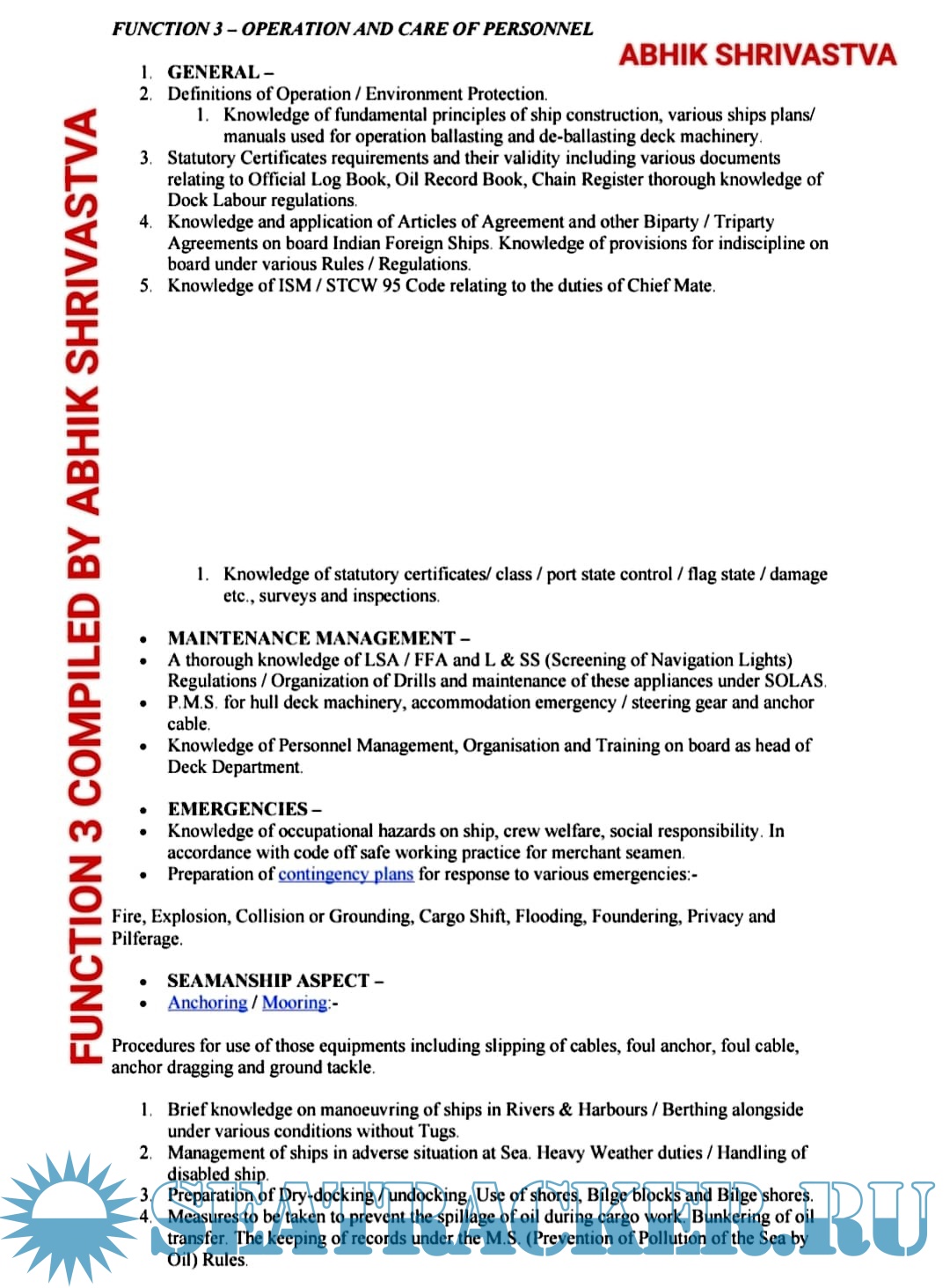 Oral Notes (Function 1) for Chief Mate F.G. Mercantile Marine Department (MMD), India Examinations…