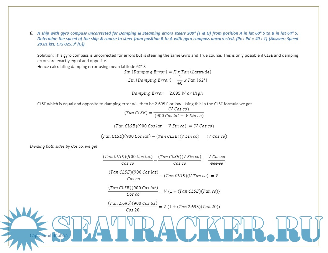 Navigational Aids - Gyro Numericals from Past Papers - Phase II (Chief Mate F.G.) Mercantile Marine…