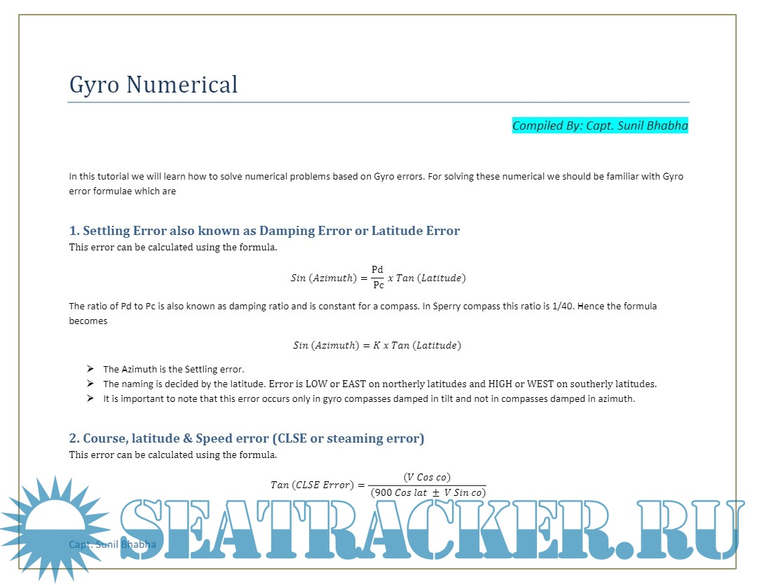 Solved Gyro Numericals - Chief Mates Phase II - Mahbub Hasan [2023, PDF]