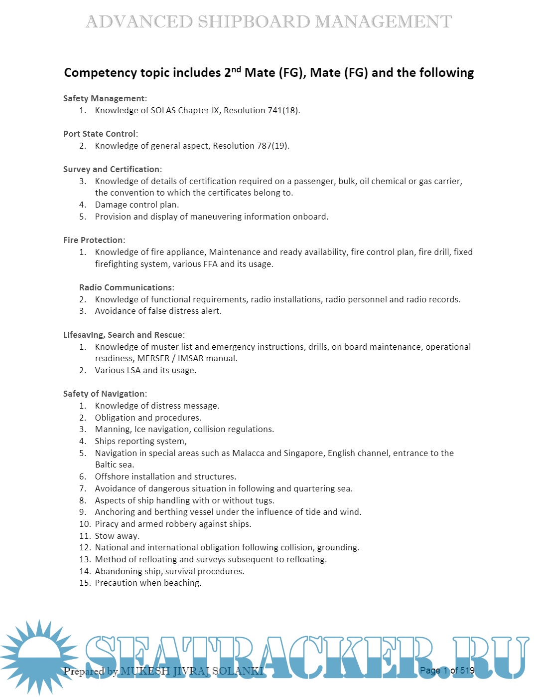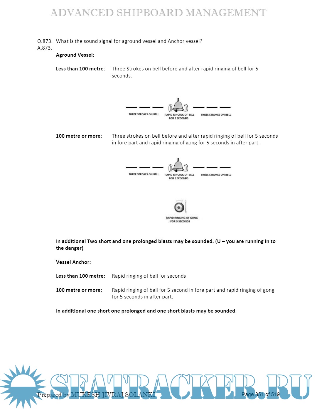 Orals Question Bank (November 2023) for ASM (Advanced Shipboard Management) / Master's…