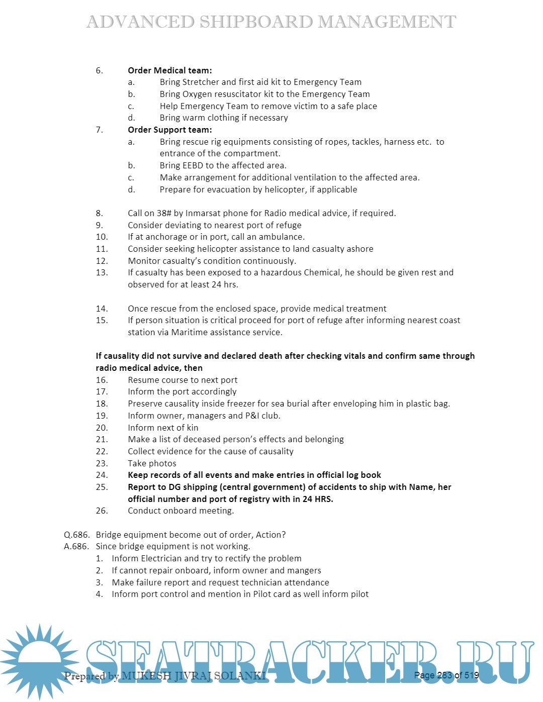Orals Question Bank (October 2023) for ASM (Advanced Shipboard Management) / Master's…