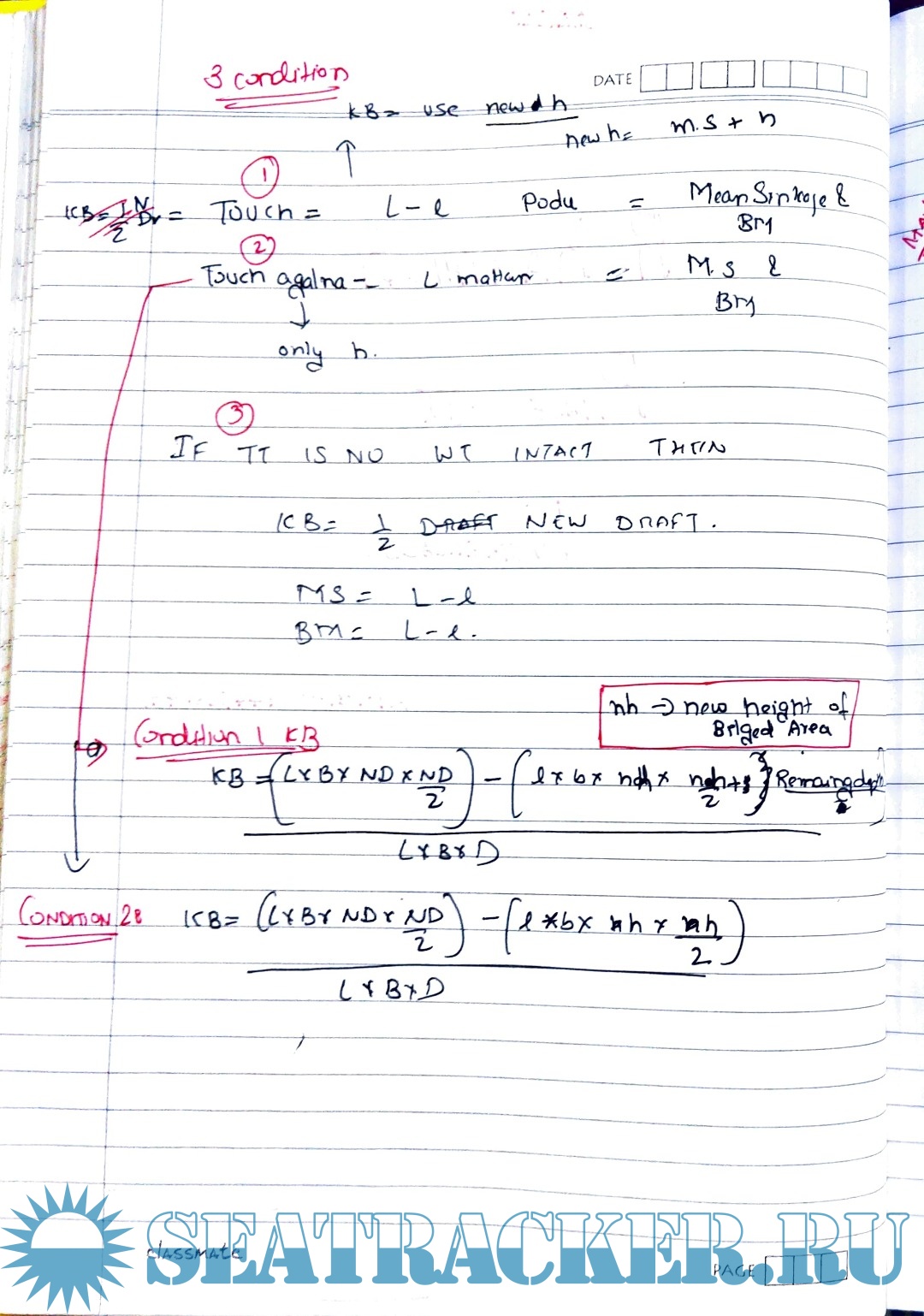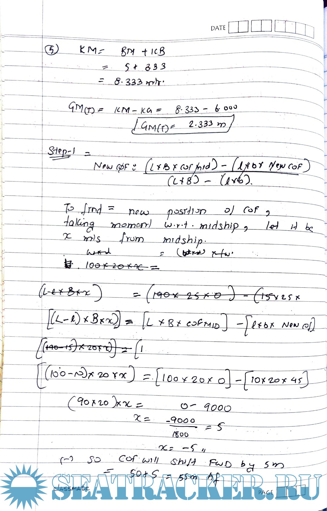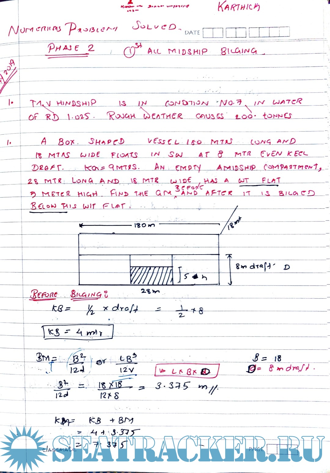 Solved Numericals (Handwritten Notes) (20xx-2019) from Past Question Papers of Mercantile Marine Department (MMD), India Examinations for Phase II (Chief Mate F.G.).