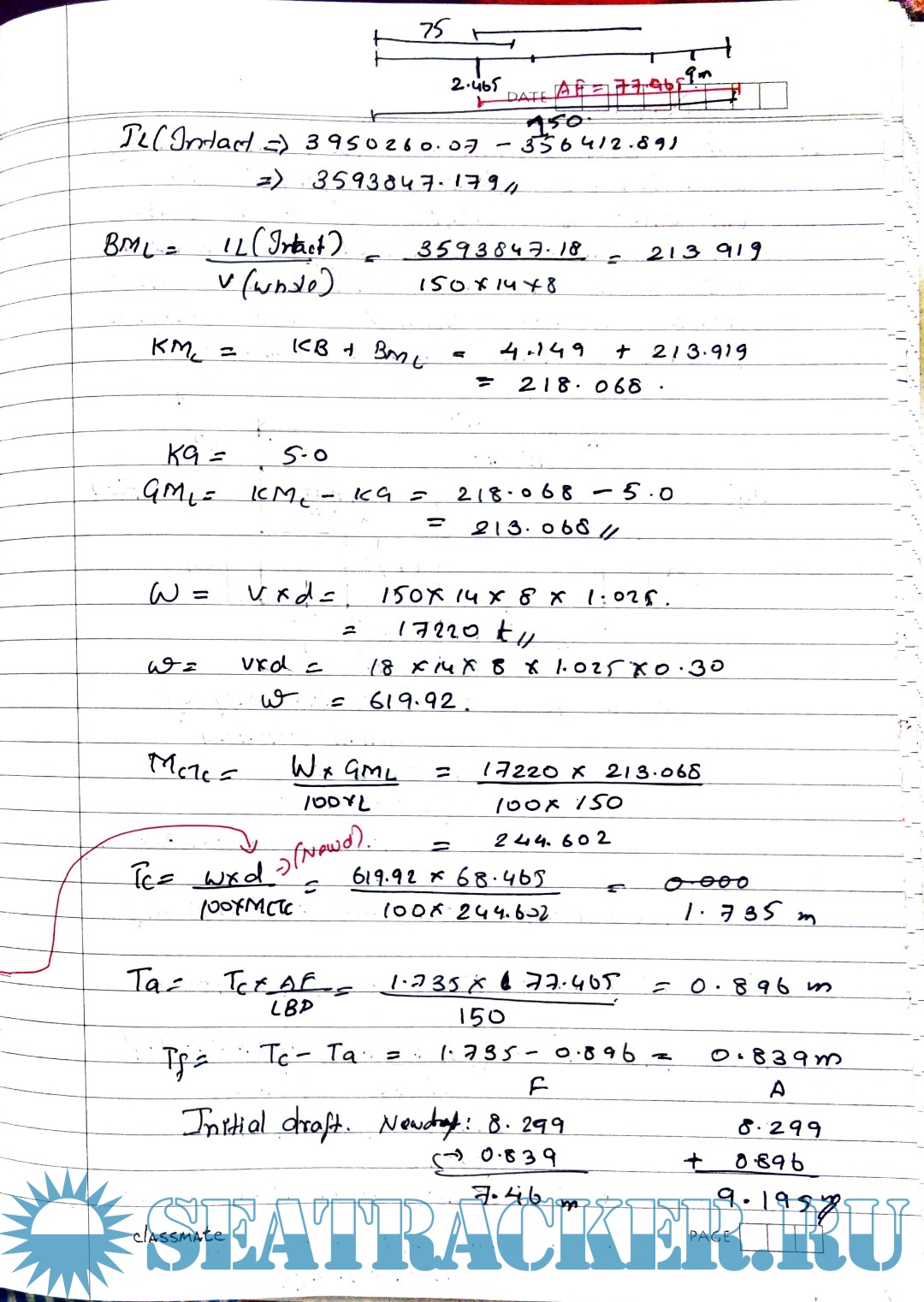 Naval Architecture II - Solved Numericals (20xx-2019) from Past Question Papers of Mercantile Marine Department (MMD), India Examinations for Phase II (Chief Mate F.G.)