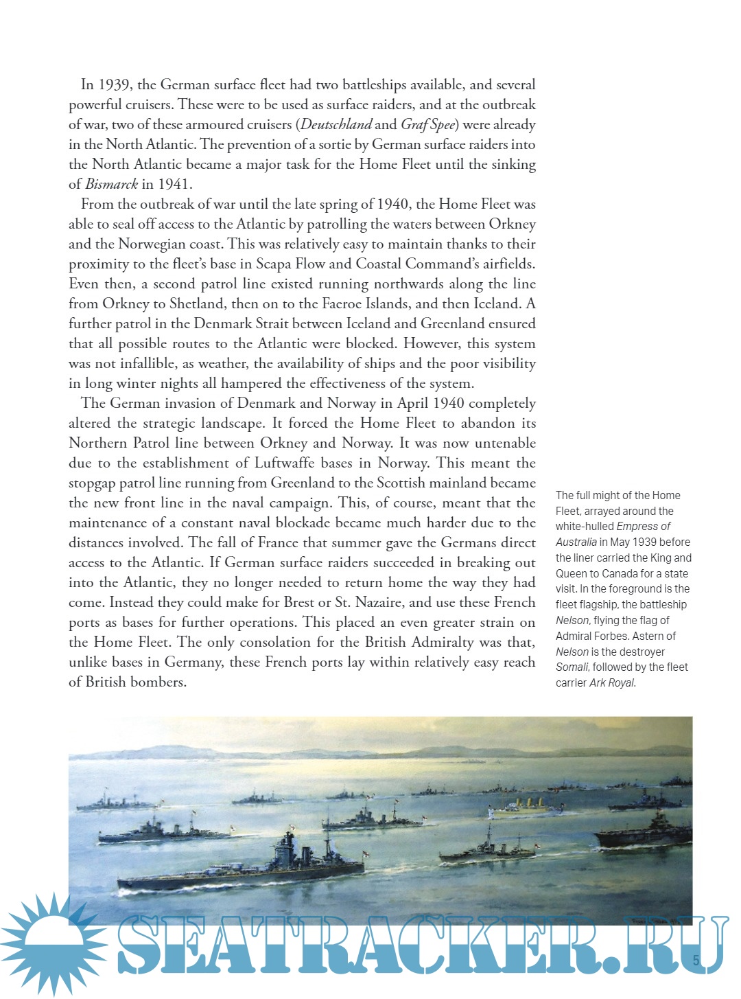 He explains the complex responsibilities of the fleet, charged simultaneously with preventing the powerful German Navy from breaking out into the Atlantic; preparing to challenge any cross-Channel invasion force; and attacking German naval operations in the North Sea. Home Fleet actions included the loss of HMS Hood, the sinking of the Bismarck and countering the invasion of Norway, Germany's biggest amphibious operation of the war.