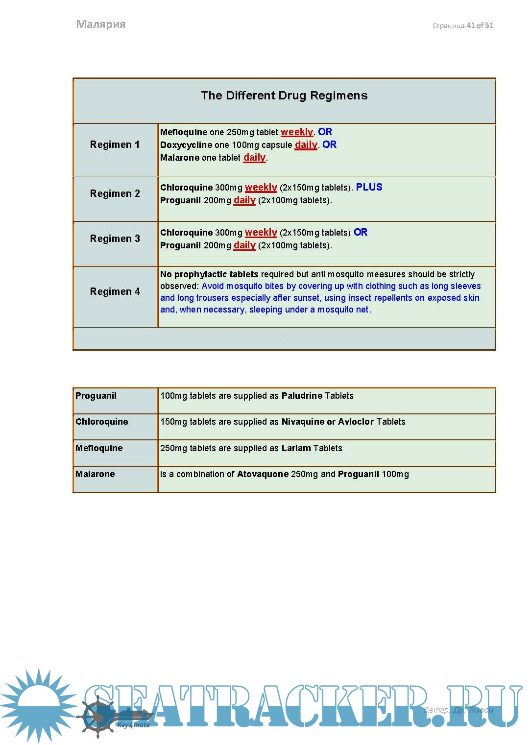 Доп. информация: Крайне полезный гайд для моряков. Владение реальной практической информацией может спасти жизнь заболевшего малярией члена экипажа .