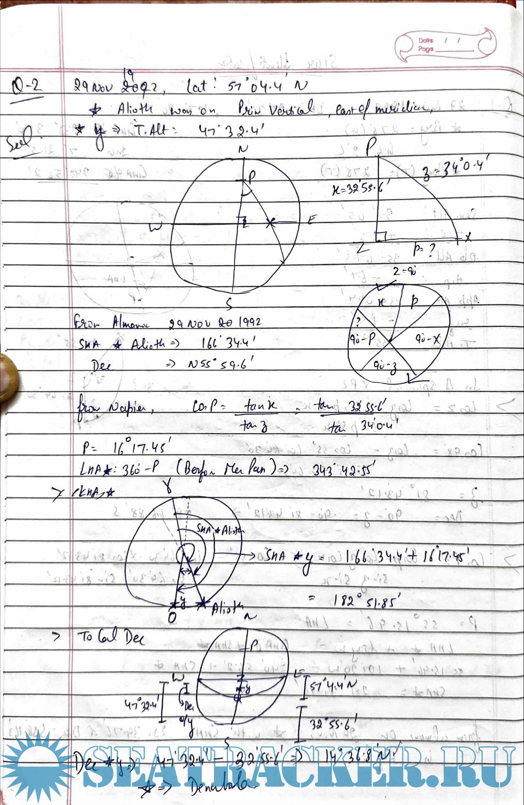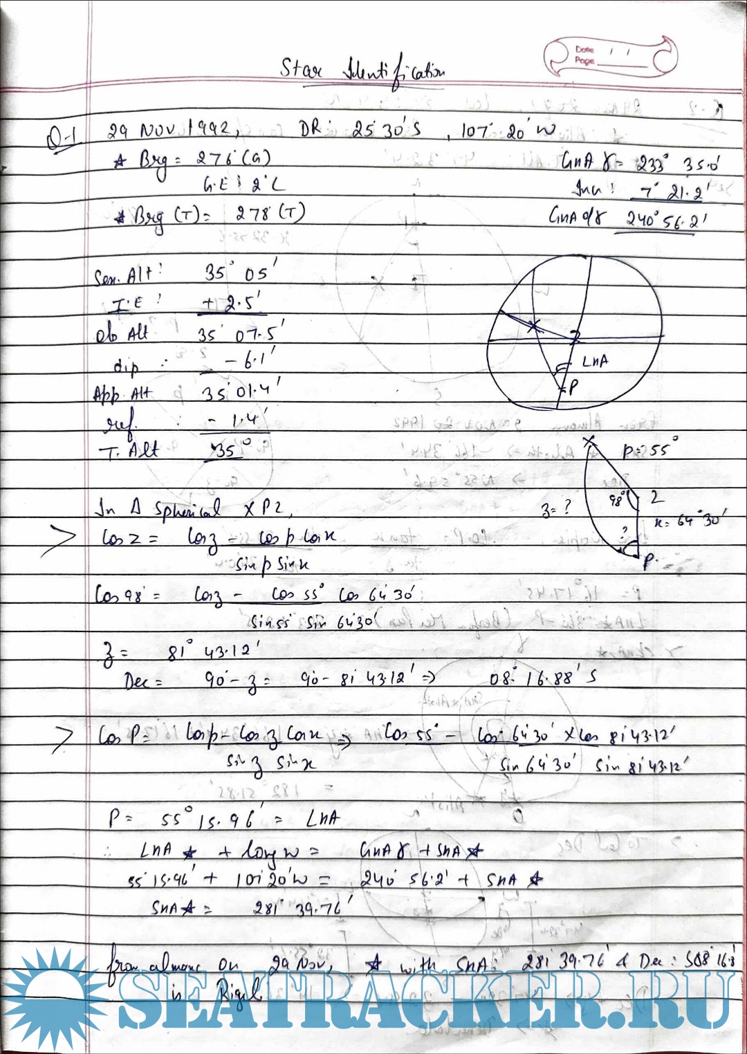 Description: Paper: Terrestrial and Coastal NavigationStream: Phase I (Chief Mate F.G.)Handwritten Notes.Solutions for Capt. R.K. Sood Star Identification Numericals for Mercantile Marine Department (MMD), India Examinations.
