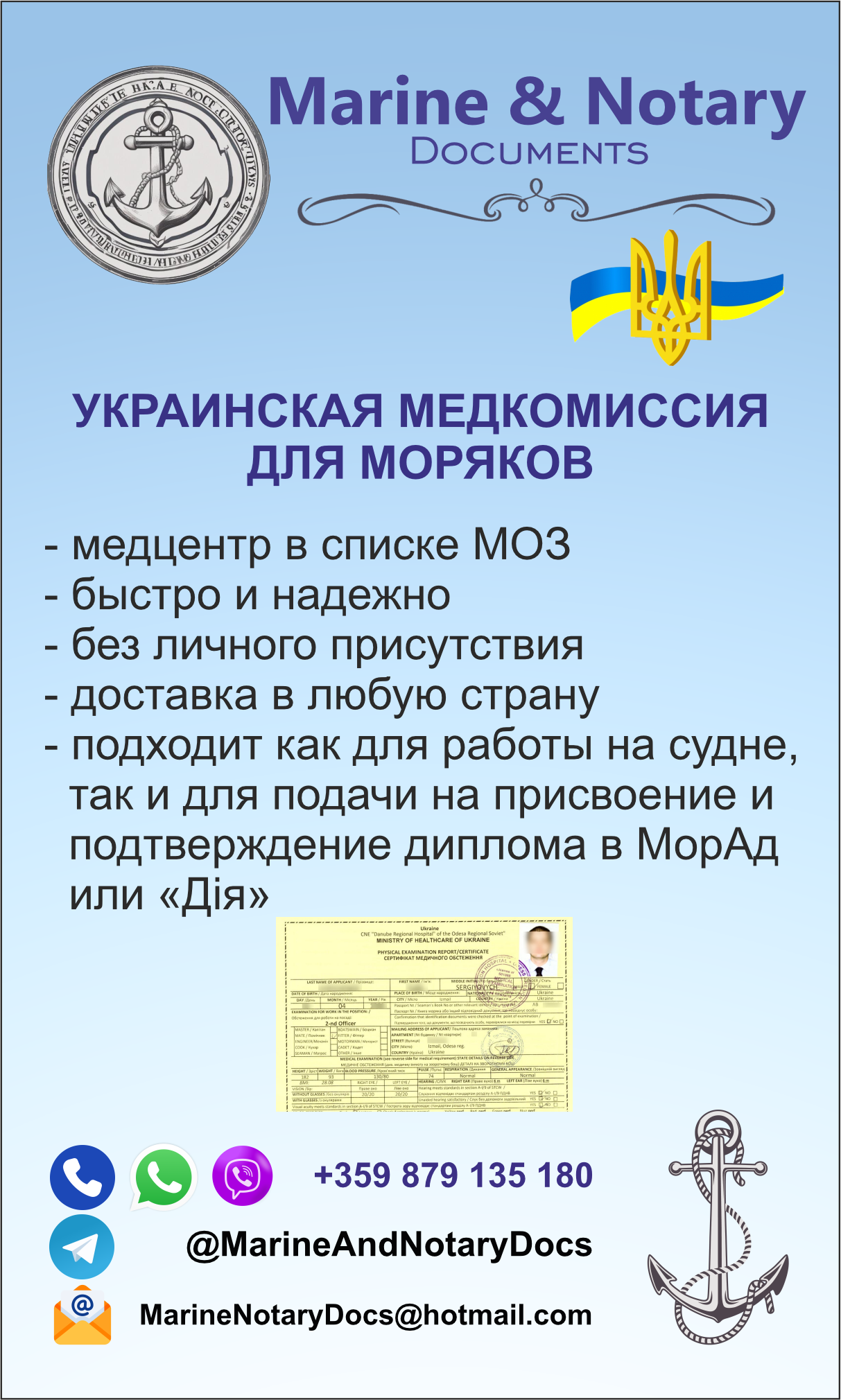 Помощь украинским морякам в получении морских документов и нотариальные услуги