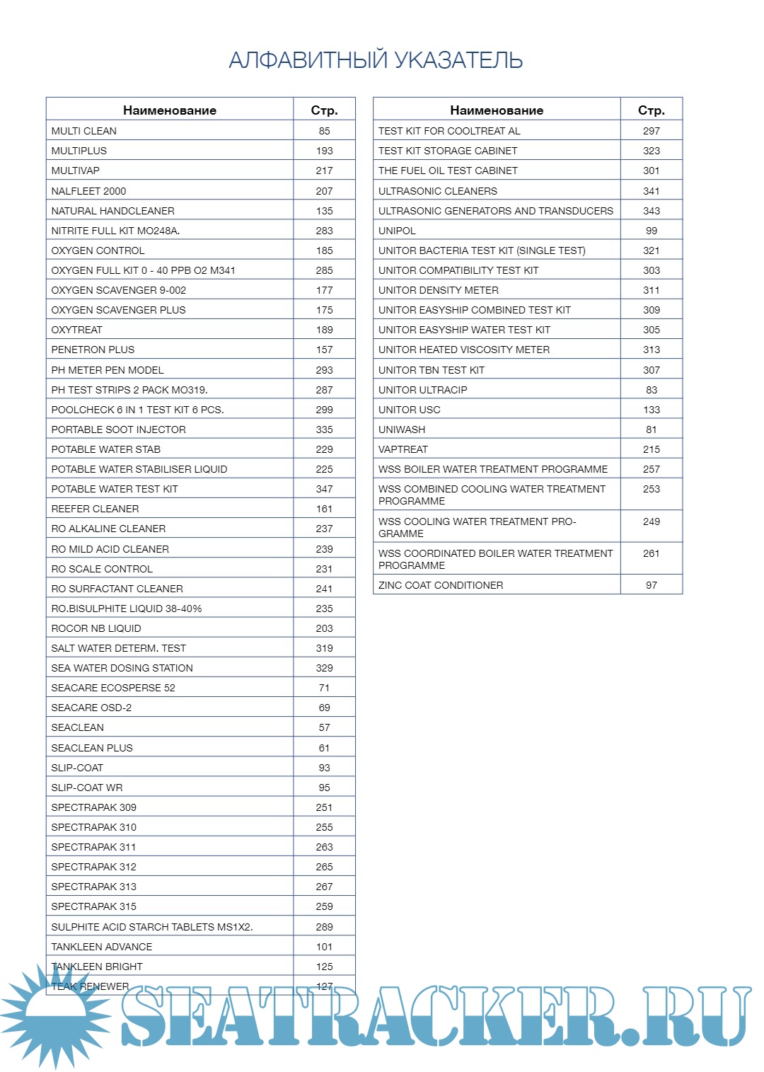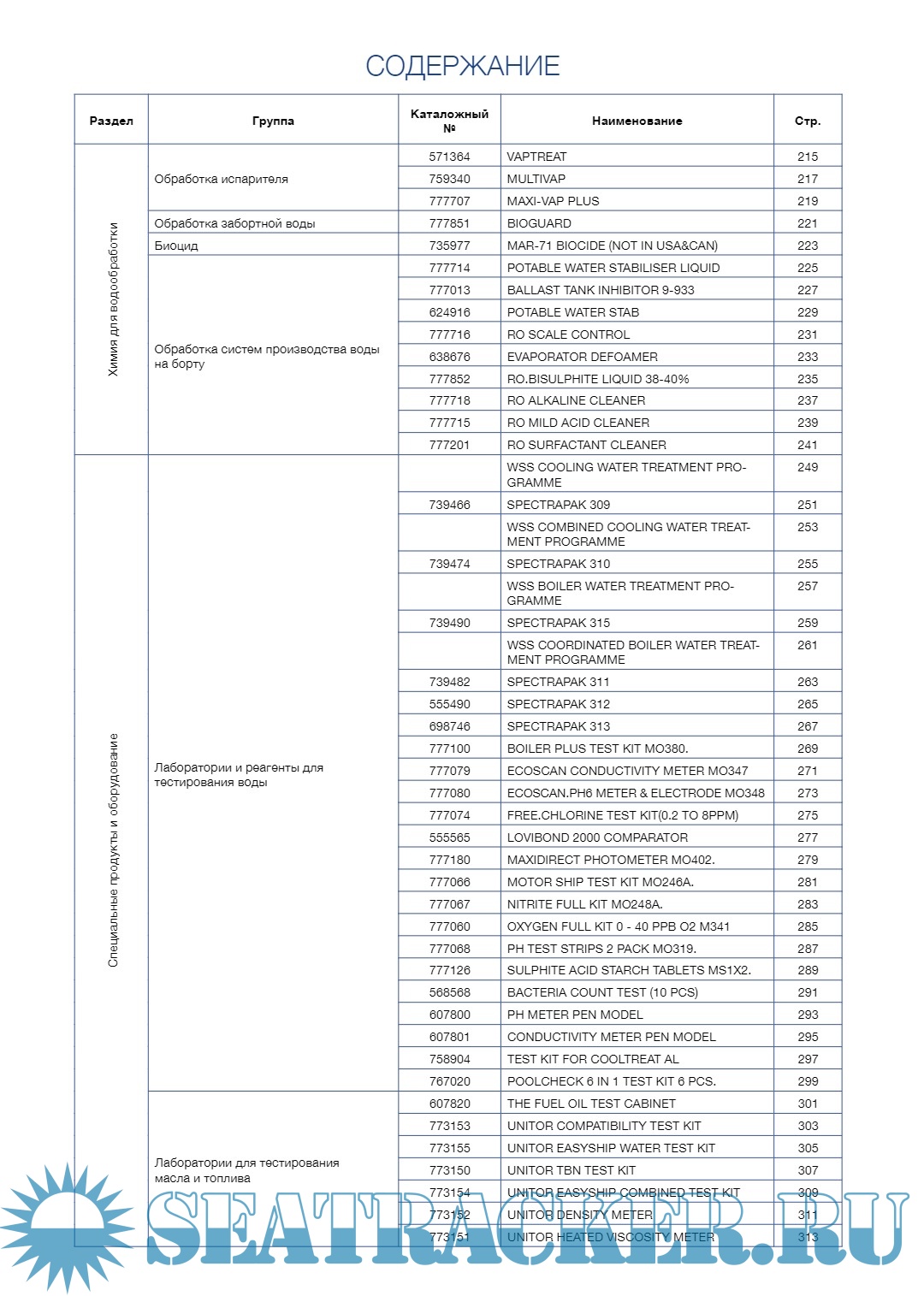 торговых брендов «Unitor», «Nalfleet» и др. Здесь описана только часть нашей номенклатуры,