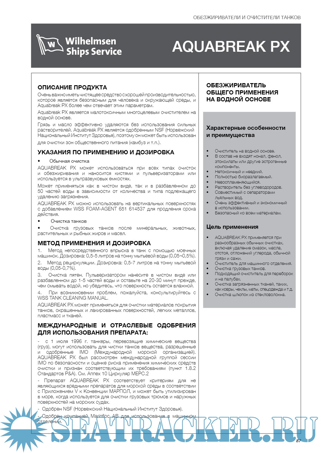 Год выпуска: 2011 Язык: Русский Автор: Wilhelmsen Ships Service Жанр: Руководство Издательство: Wilhelmsen Ships Service Формат: PDF Качество: Распознанный текст с ошибками (OCR) Количество страниц: 346 Описание: В предлагаемом Вашему вниманию Руководстве описаны химические препараты, специальные продукты и оборудование, поставляемые компанией Wilhelmsen Ships Service (далее в тексте этого руководства – WSS), которая с 2006 г. является правопреемником компании Unitor, а с 2011 г. – компании Nalfleet, и соответственно единоличным владельцем торговых брендов «Unitor», «Nalfleet» и др. Здесь описана только часть нашей номенклатуры, а именно – судовая химия под брендами Unitor и Nalfleet, и оборудование для ее применения и тестирования на борту морских судов и других объектах. С остальной номенклатурой, входящей в общий каталог компании WSS, Вы можете познакомиться на сайте нашей компании (по адресу: wssproducts.wilhelmsen.com). Обращаем внимание, что Вы держите в руках новую отредактированную версию Руководства по химии WSS, которое содержит самые актуальные на сегодняшний день наименования нашей постоянно меняющейся и совершенствующейся номенклатуры. Мы надеемся, данное Руководство на русском языке поможет техническому менеджменту наших клиентов, экипажам судов, а также береговым специалистам правильно использовать наши химические продукты и решения, а также тестовые материалы и лаборатории для профилактики и очистки судового оборудования и иных систем. Мы также будем признательны за Ваши комментарии, предложения и замечания по содержанию данного Руководства, которые мы обязательно учтем при его печати в будущем!