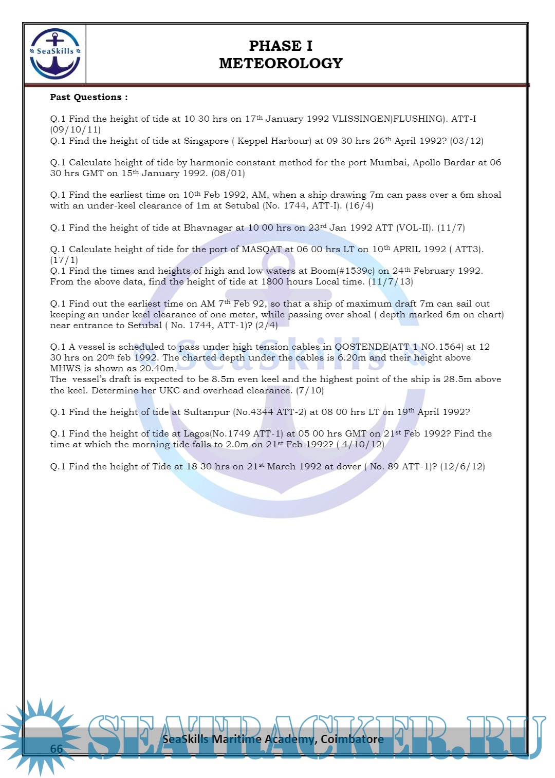 Theory and Tide Calculations as per syllabus of Mercantile Marine Department (MMD), India Examinations for Phase I (Chief Mate F.G.)