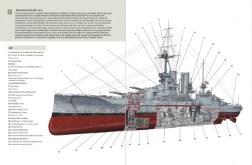 In 1906, the Germans began building a dreadnought fleet of their own, and while they used a smaller main gun than the British, word soon reached the British Admiralty that German designers were planning to build a new class of dreadnoughts, armed with larger guns. This raised the spectre that the British dreadnought fleet would be outgunned, and prompted the Admiralty to order the building of their own "super dreadnoughts". The first of these new dreadnoughts were laid down in 1909, and entered service three years later. The British public supported this programme, and the slogan "we want eight and cannot wait" became popular, a reference to the building of eight of these super dreadnoughts. These first eight were augmented by the Erin and the Canada, both of which were being built for foreign navies until commandeered by the Admiralty. Four more super dreadnoughts entered service in 1914. By then the Admiralty had developed a new programme of "fast battleships", armed with 15-inch guns. These powerful warships entered service in time to play a part in the battle of Jutland in 1916. World War I broke out before the Royal Navy had fully evaluated these new warships, and so lessons had to be learned through experience - often the hard way. Although none of these super dreadnoughts were lost in battle, their performance at the battle of Jutland led to a re-evaluation of the way they were operated. Still, for four years they denied control of the sea to the enemy, and so played a major part in the final collapse of Imperial Germany. This New Vanguard title, the second of two covering the British battleships of World War I will continue the story begun in the first volume by taking a detailed look at the later battleships in the fleet - the "super dreadnoughts".