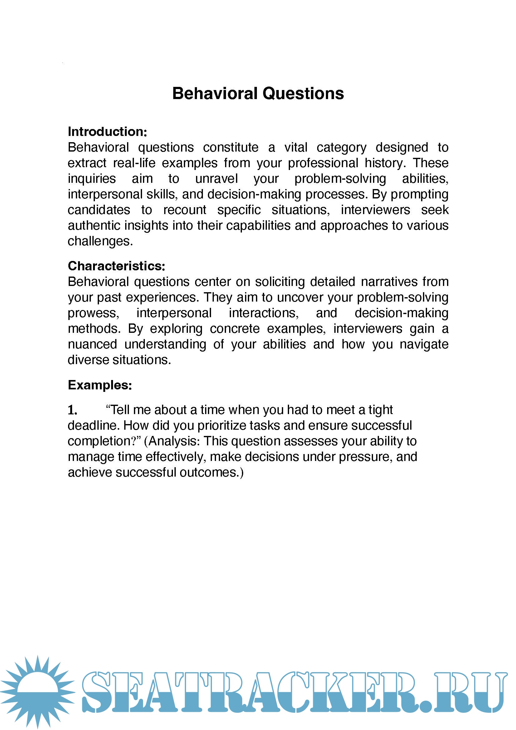 • Responding to Any Interview Question