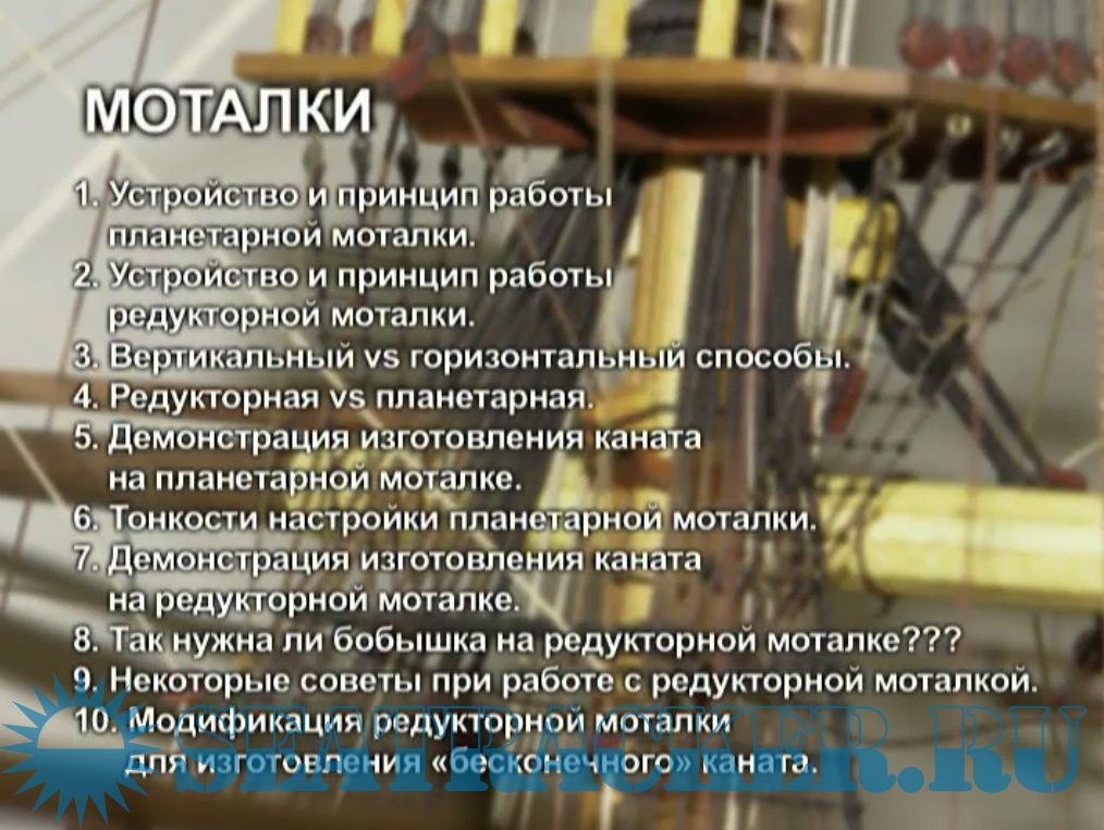 Год выпуска: 2011 Автор: Алексей Доманов Язык: Русский Жанр: Судомоделизм Продолжительность: 1 час 44 мин. Качество: WEBRip Формат: MKV Видео кодек: AV1 Аудио кодек: AAC Видео: 720х540, 720 кбит/сек Аудио: 128 кбит/сек, 48 кГц 2 канала Описание: Канаты 1. Какие бывают, из чего состоят. Структура. Необходимость сердечника в 4х-прядном канате. 2. Канаты в моделизме. Масштаб. 3. Необходимость замены канатов из наборов. Нитки. 1. Полиэфир против хлопок. 2. Обзор используемых полиэфирных ниток. Производители. Маркировка. Размеры. 3. Принцип изготовления канатов. Моталки 1. Устройство и принцип работы планетарной моталки. 2. Устройство и принцип работы редукторной моталки. 3. Вертикальный против горизонтального способа. 4. Редукторная против планетарной. 5. Демонстрация изготовления каната на планетарной моталке 6. Тонкости настройки планетарной моталки. 7. Демонстрация изготовления каната на редукторной моталке. 8. Так нужна ли бобышка на редукторной моталке??? 9. Некоторые советы при работе с редукторной моталкой. 10. Модификация редукторной моталки для изготовления «бесконечного» каната.