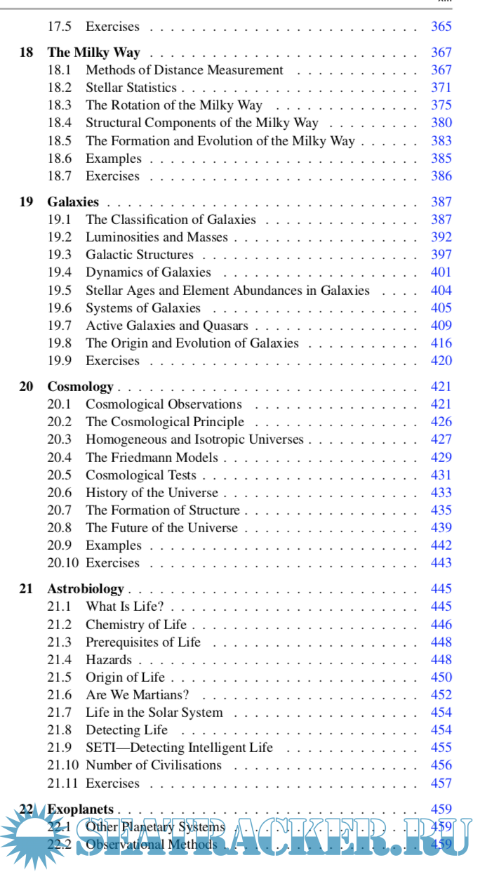 Year: 2017 Language: english Author: Hannu Karttunen et alli editors Publisher: Springer Edition: 6 ISBN: 978-3-662-53045-0 Format: PDF Quality: eBook Pages count: 548 Description: As the title suggests, this book is about fundamental things that one might expect to remain fairly the same. Yet astronomy has evolved enormously over the last few years, and only a few chapters of this book have been left unmod- ified. Since the book is used also by many amateurs, the introductory chapter has been extended to give a brief summary of different celestial objects to “soften” the jump to rather technical topics. The chapter on the solar system was very long. It has now been split into two separate chapters. Chapter 7 deals with general properties of the solar system. Individual objects are discussed in Chap. 8, which is more prone to change when new data will accumulate. Also, new data on exoplanets is obtained at an increasing rate. Therefore exoplanets are given a chapter of their own; it is at the end of the book, since it is closely related to astrobiology, already included in the previous edition. These last chapters may change more than the rest of the book in the future. These changes mean that the numbering of formulas and figures has changed quite extensively after the previous version of the book. Cosmology and galactic astronomy have still been evolving rapidly. There- fore there are many revisions to the chapters on the Milky Way, galaxies, and cosmology. In addition, several other chapters contain smaller revisions and many of the previous images have been replaced with newer ones.