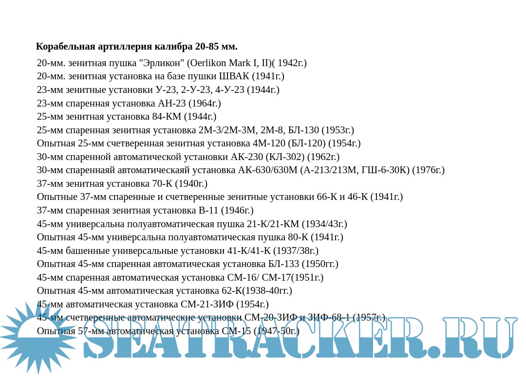 Корабельная артиллерия калибра 20-85 мм.