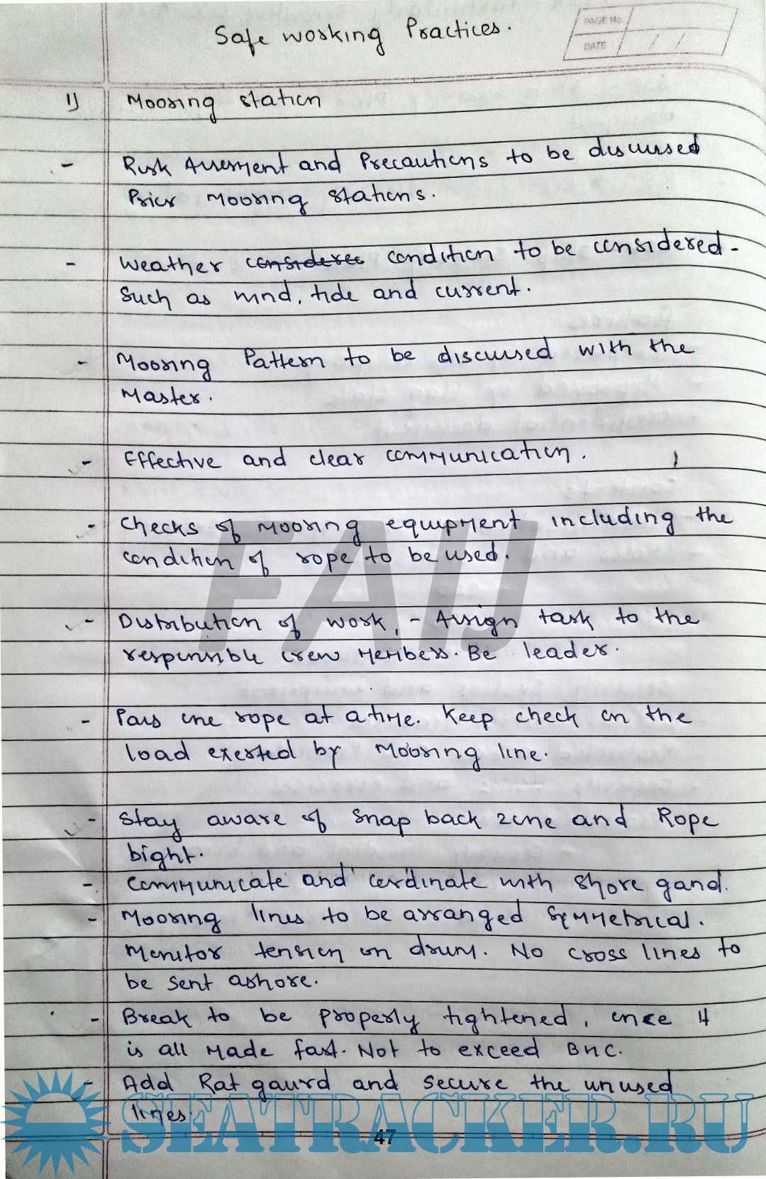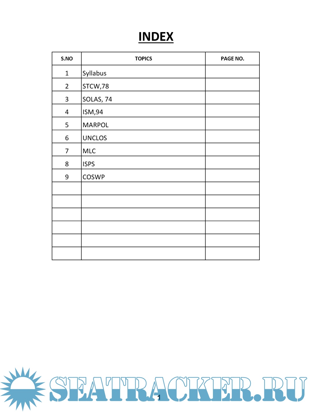 While every effort has been made to ensure the accuracy and relevance of the information, this document is not an official publication and should not be considered a substitute for approved study material, statutory regulations, or guidance issued by maritime authorities. Readers are advised to crossreference with authentic sources such as SOLAS, STCW, COSWP, and companyspecific Safety Management Systems (SMS) where applicable.