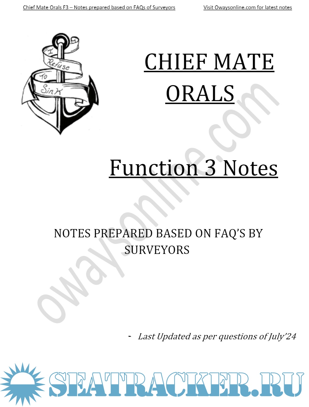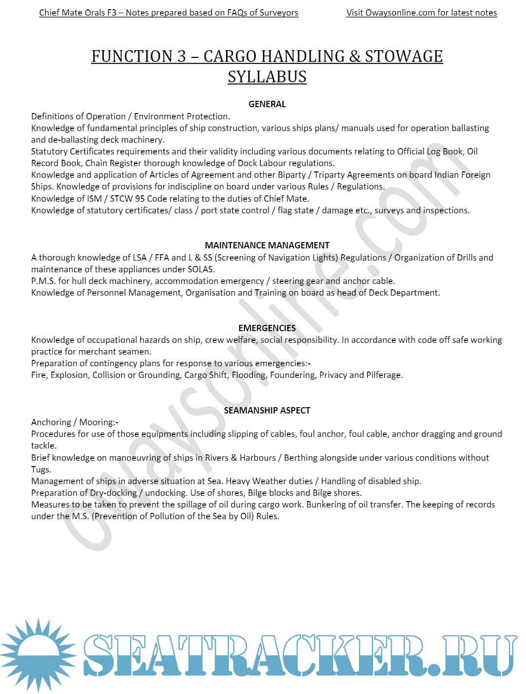 Chief Mate F.G. MMD, India Orals Exams Notes Based on Frequently Asked Questions: Function 3