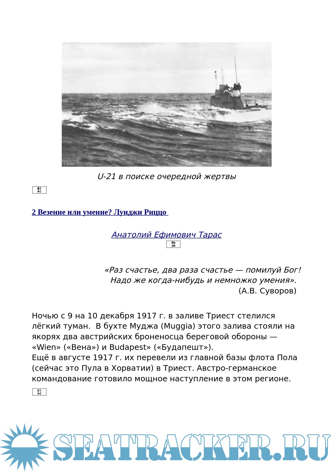 Год выпуска: 2025 Язык: Русский Автор: Тарас А.Е. Жанр: Историческое Формат: PDF, DOCx, EPUB Качество: Изначально компьютерное (eBook) Количество страниц: 88 Описание: Книга представляет собой сборник статей по истории иностранных флотов. Содержание 1. Три героя Дарданелл 2. Везение или умение? Луиджи Риццо 3. Лучшая подводная атака ХХ века