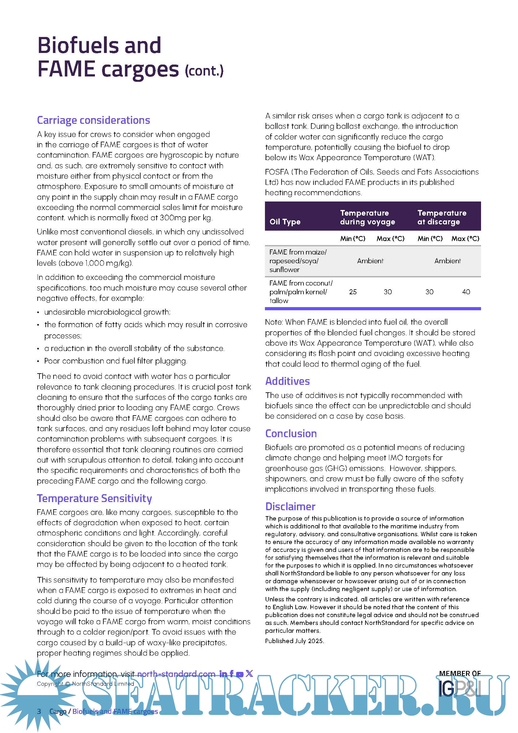 Carriage of Biofuels and FAME cargoes