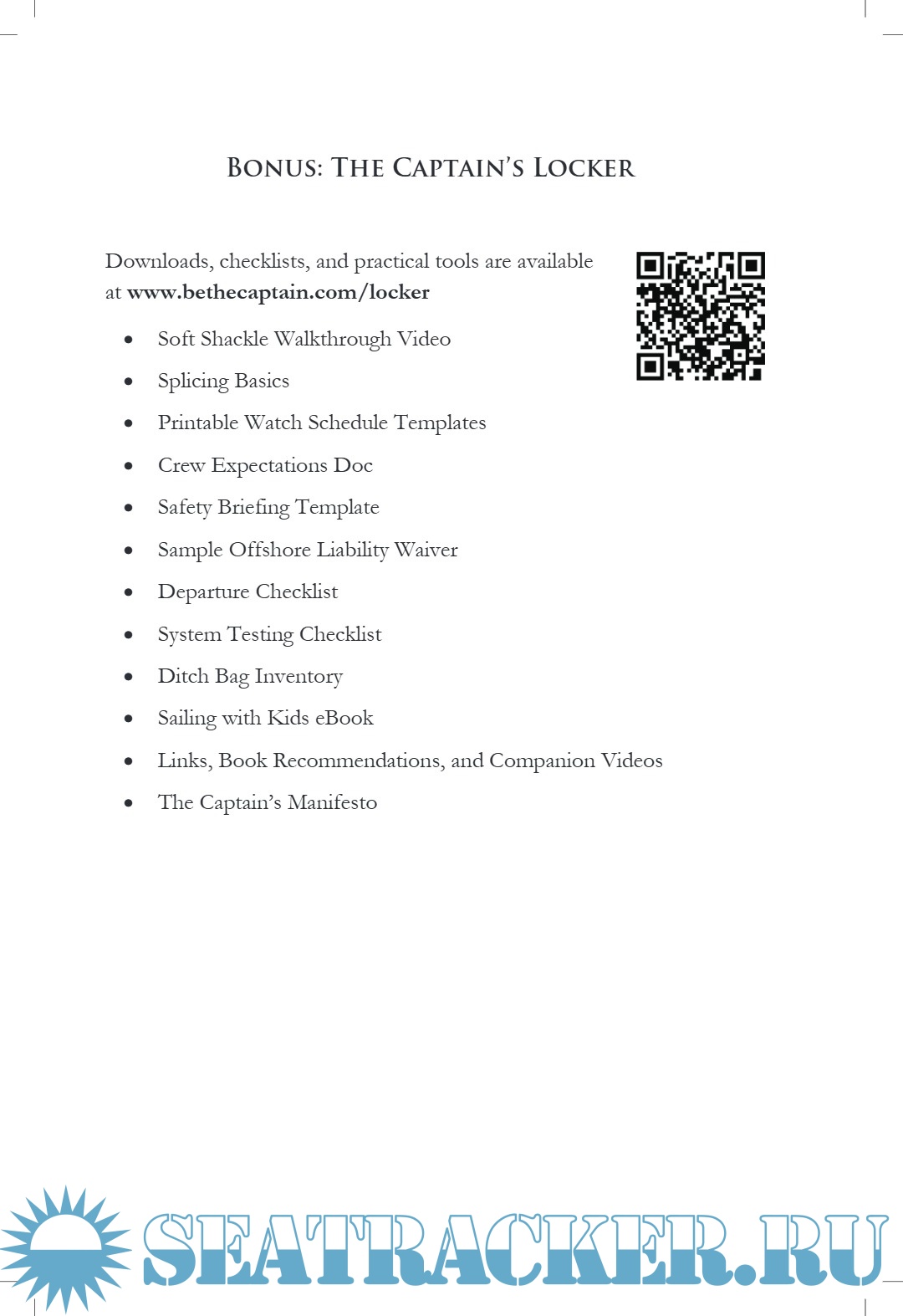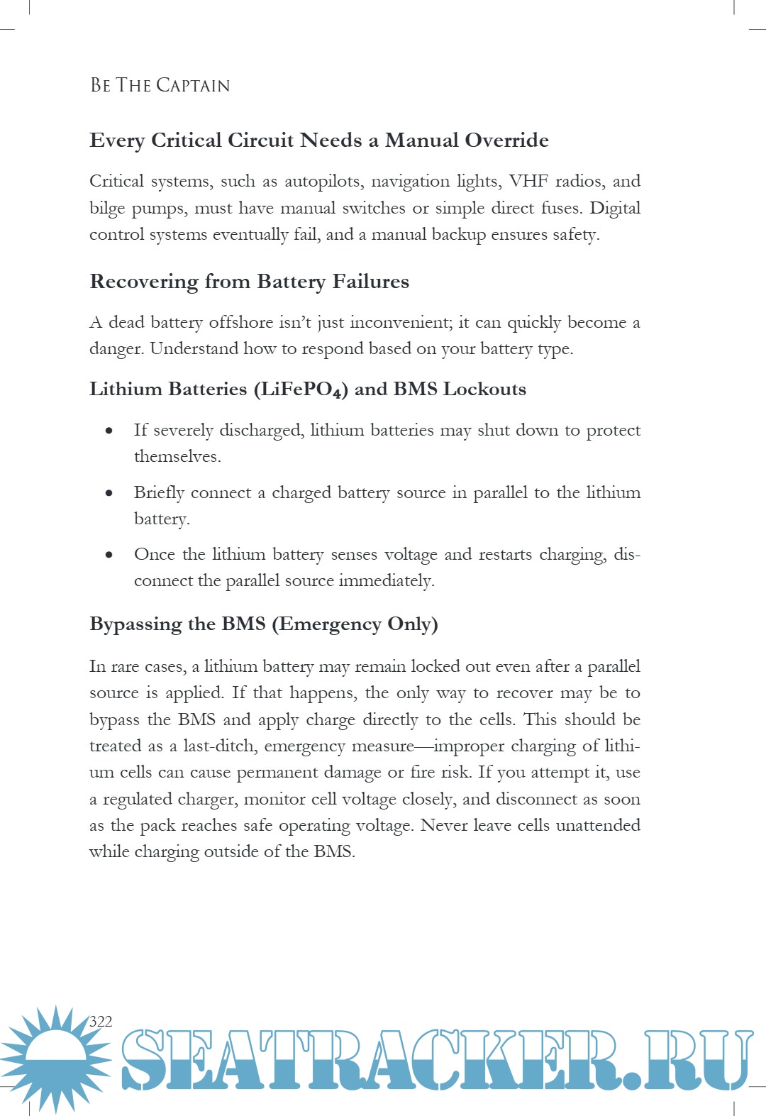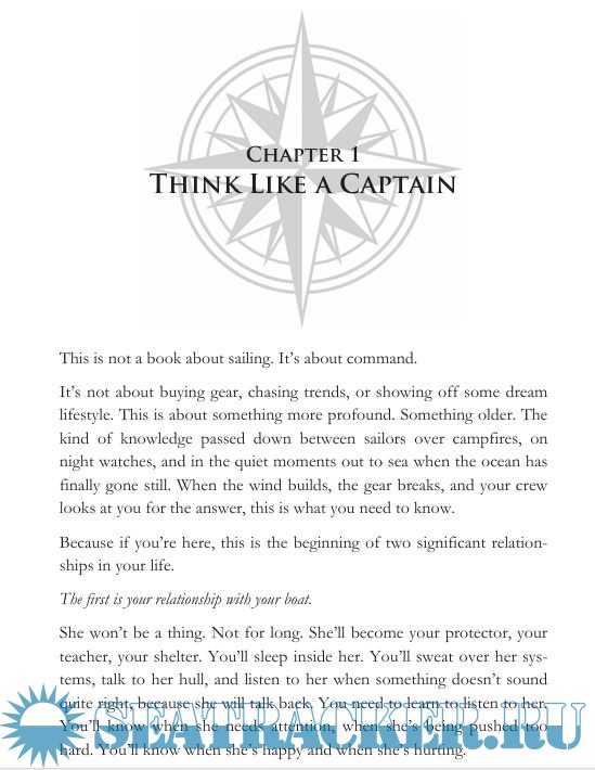 Be The Captain is his hands-on field manual - An excellent treatise on how to judge a sailboat for seaworthiness. Knowledge that is necessary for rigging and sailing the boat. Tactics for managing a sailboat in a storm and mooring. Managing the systems in a boat and common repairs. Weather analysis, offshore emergencies, living on board, watch keeping and maintenance.