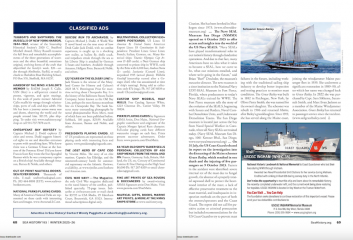 Quarterly Sea History Magazine - the Art, Literature, Adventure, Lore and Learning of the Sea is published quarterly by the National Maritime Historical Society. Our seafaring history comes alive in the pages of Sea History, the National Maritime Historical Society’s quarterly magazine. The pre-eminent journal of advocacy and education in our field, Sea History covers the world of maritime museums, sail training, key events and people in our maritime past, and the stories of everyday sailors past and present, and marine archaeology, with a national focus and an international scope, as well as Others regular features.