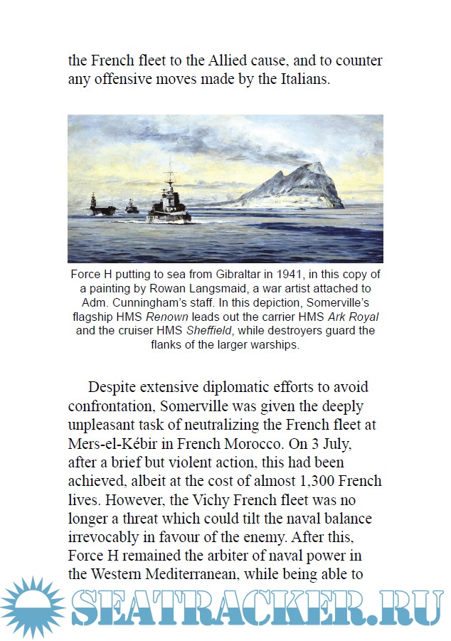 Year: 2025 Language: English Author: Angus Konstam Genre: History of the Navy Publisher: Osprey Publishing Format: PDF Quality: eBook Pages count: 151 Description: Formed to project British naval power from Gibraltar, Force H was the Royal Navy's unique strategic task force. This fully illustrated study explains its roles, organization and history. In June 1940, the fall of France and its powerful fleet completely changed the naval balance in both the Atlantic and the Mediterranean. To counter this, the Admiralty formed Force H, a unique task force based at Gibraltar, which was assigned some of Britain's most powerful capital ships. Command was given to James Somerville, one of Britain's finest admirals, who reported directly to the Admiralty. Force H would be the Royal Navy's 'fire brigade' in the theatre. In this book, naval historian Angus Konstam presents a detailed study of Force H's purpose, capabilities, organization, and how it fought to dominate the seas around the crucial Straits of Gibraltar. Until the Italian surrender in 1943, Force H would be tasked with crucial actions from the destruction of the French fleet at Mers-el-Kebir to hunting the Bismarck in the Atlantic, and from Malta convoy escort to supporting Allied amphibious landings from Madagascar to Sicily. Packed with spectacular original artwork, maps and diagrams, it demonstrates how Force H, more than any other British naval force, had the strategic flexibility and firepower to turn the tide of war in not just one, but two vital theatres.