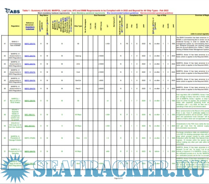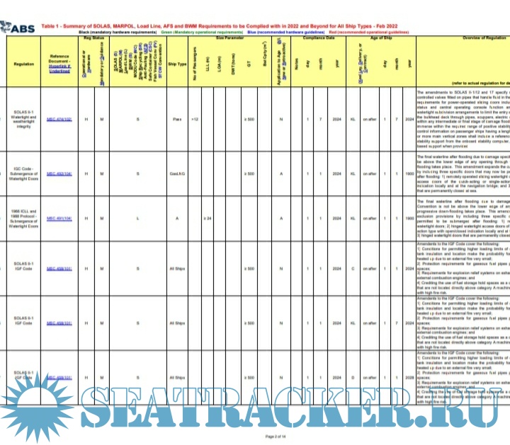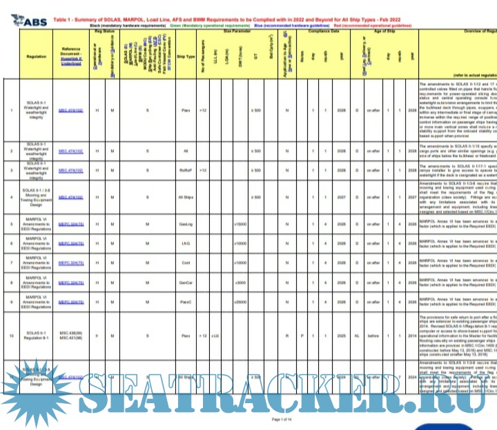 Description: IMO Convention amendment Matrix By ABS Class