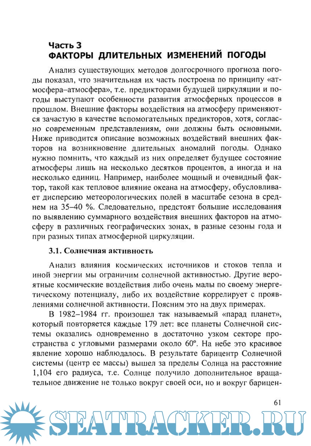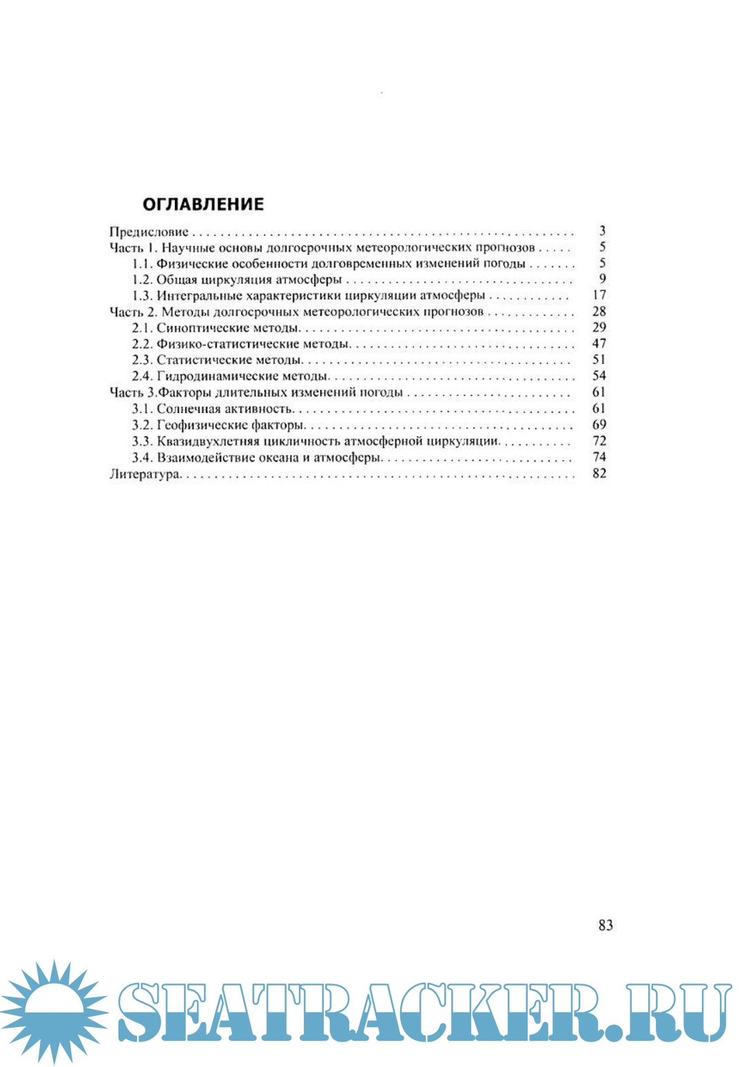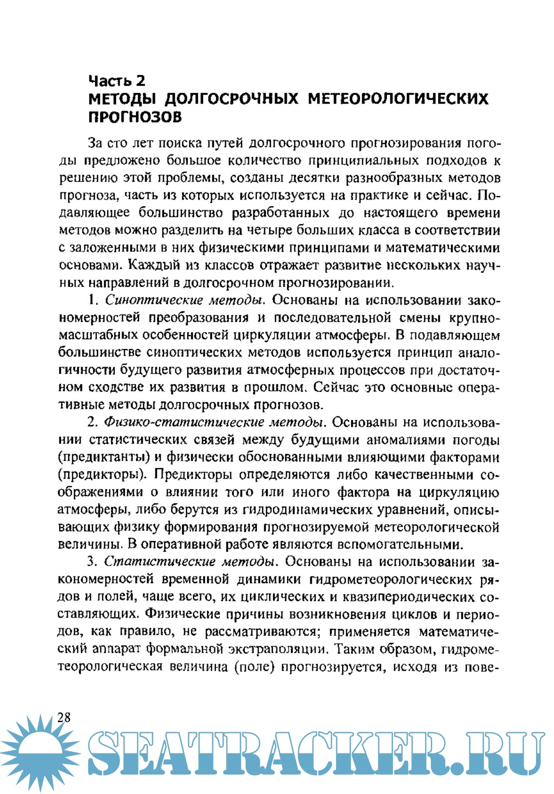 Описание: Рассматриваются долгосрочные метеорологические прогнозы (ДМП), являющиеся одним из самых проблемных направлений в метеорологии, научные основы которого еще нельзя считать окончательно установленными. Специалист-метеоролог должен знать современное состояние данной области науки.