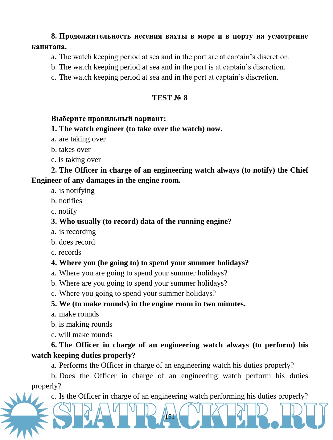 Описание: Практикум содержит адаптированные тексты на английском языке с элементами профессиональной направленности и комплексом упражнений. Издание подготовлено с учетом требований Федерального государственного образовательного стандарта высшего образования, предъявляемых к изучению дисциплины «Иностранный язык (английский)», и предназначено для студентов первого курса специальности «Эксплуатация судовых энергетических установок», будущая деятельность которых связана с эксплуатацией судового технического оборудования в машинном отделении.