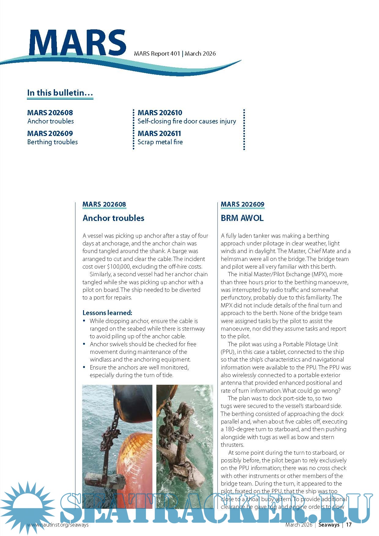 Mariners’ Alerting and Reporting Scheme (MARS) (April) - The Nautical Institute [2026, PDF]