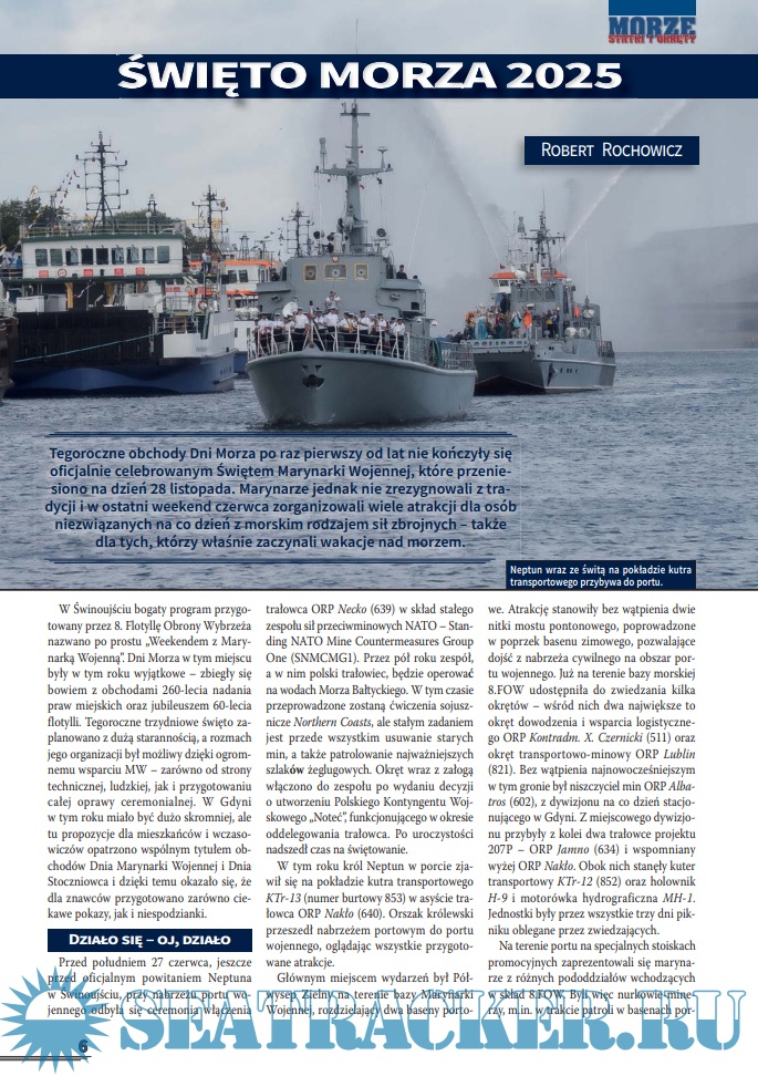 Description: Польский морской журнал. Издается с 1996 года, первоначально как ежеквартальный. С 1999 года издается раз в два месяца, а с 2007 года-как ежемесячный. Первоначально назывался Morza Statki i Okrety, в 2006 году переименован в Morze Statki i Okrety. С 2004 года полностью цветной (ранее только вставки). В 2008 году стали издаваться специальные выпуски, первоначально нерегулярные. С 2014 года выпускается как обычное издание и специальное издание, с непрерывной нумерацией.