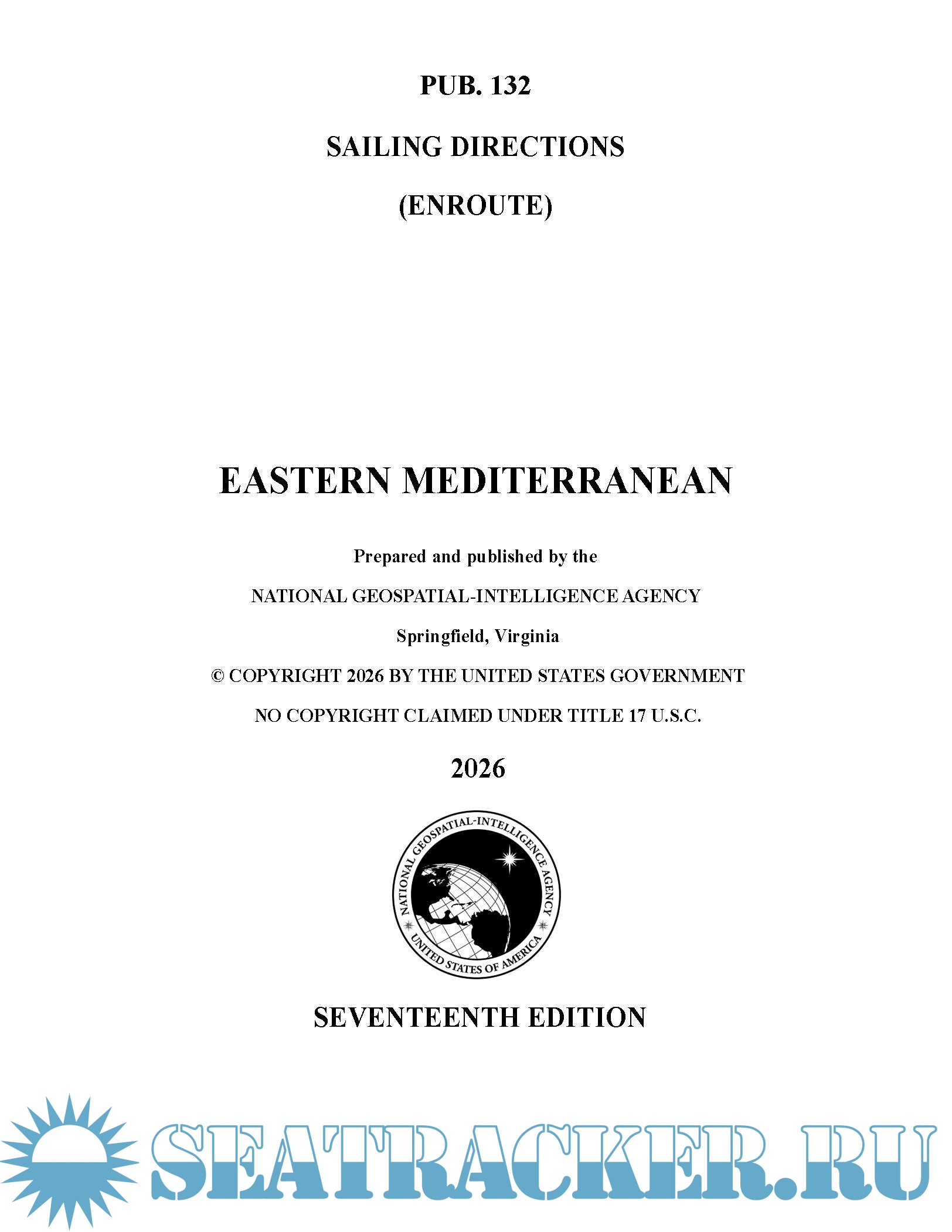 Description: Pub. 132, Sailing Directions (Enroute) Eastern Mediterranean, Seventeenth Edition, 2026, is issued for use in conjunction with Pub. 140, Sailing Directions (Planning Guide) North Atlantic Ocean and Adjacent Seas. The companion volume is Pub. 131.