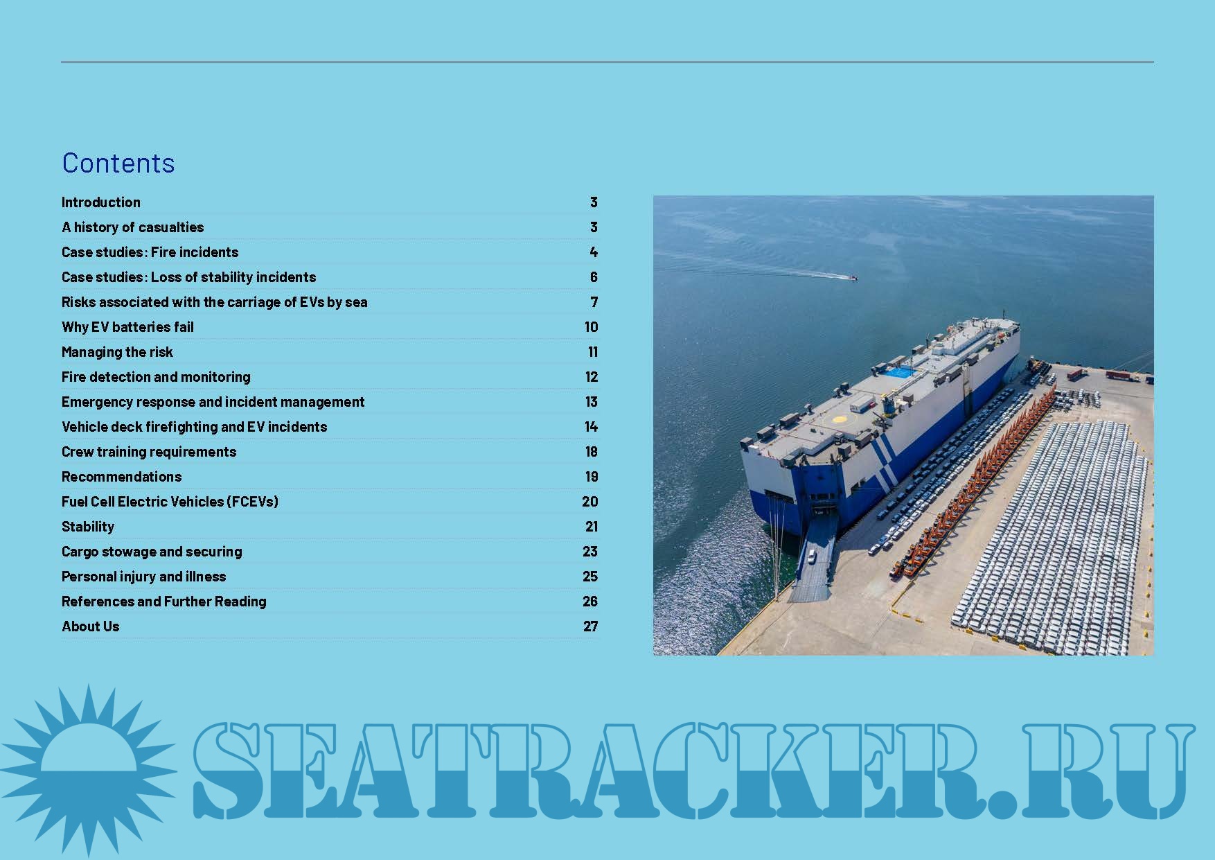 Recent casualties have highlighted the continued vulnerability of vehicle carriers to fires originating on vehicle decks and to stability‑related incidents. The increasing carriage of electric and hybrid vehicles adds further complexity, particularly due to the unique fire behaviour of lithium‑ion batteries and the operational challenges they pose for detection, firefighting and emergency response.
