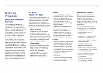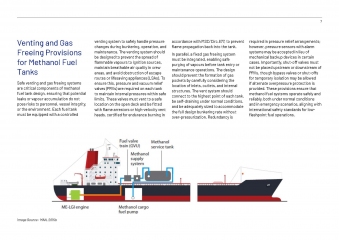 In addition, the guide addresses commercial and training considerations, including fuel quality and quantity requirements, custody transfer arrangements and crew competency standards under the STCW and IGF Codes. Together, these elements support shipowners, operators and crews in managing the risks associated with methanol bunkering while enabling its safe and effective integration into vessel operations.