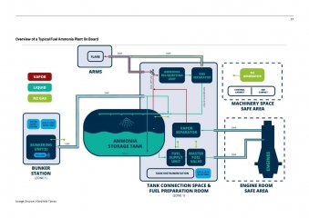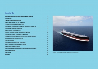 Additionally, the guide outlines a formal Management of Change (MOC) framework to support the organisational shifts, crew training, and competency development required for ammonia-fuelled vessels. It also addresses environmental considerations, such as the containment of toxic runoff, and community protection measures through dispersion modelling.