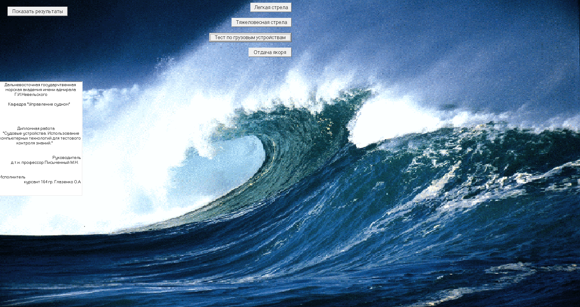 Описание: Тест по судовым устройствам, таких как: Легкая стрела, Тяжеловесная стрела, Грузовое устройство, Отдача якоря. Прост и интересен в прохождении.
