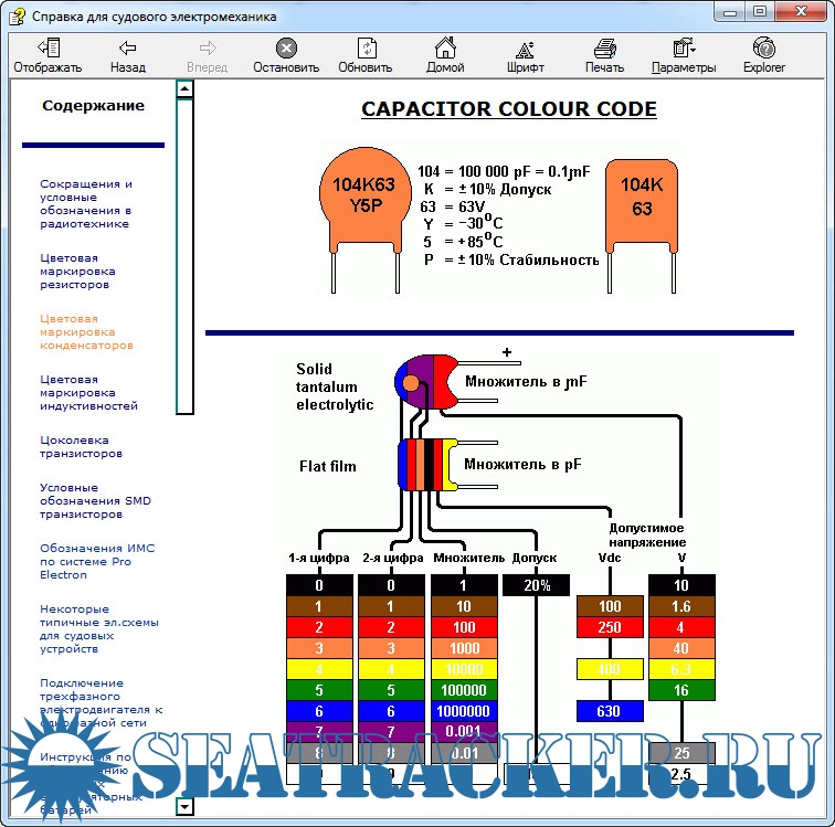 • Цветовая маркировка конденсаторов