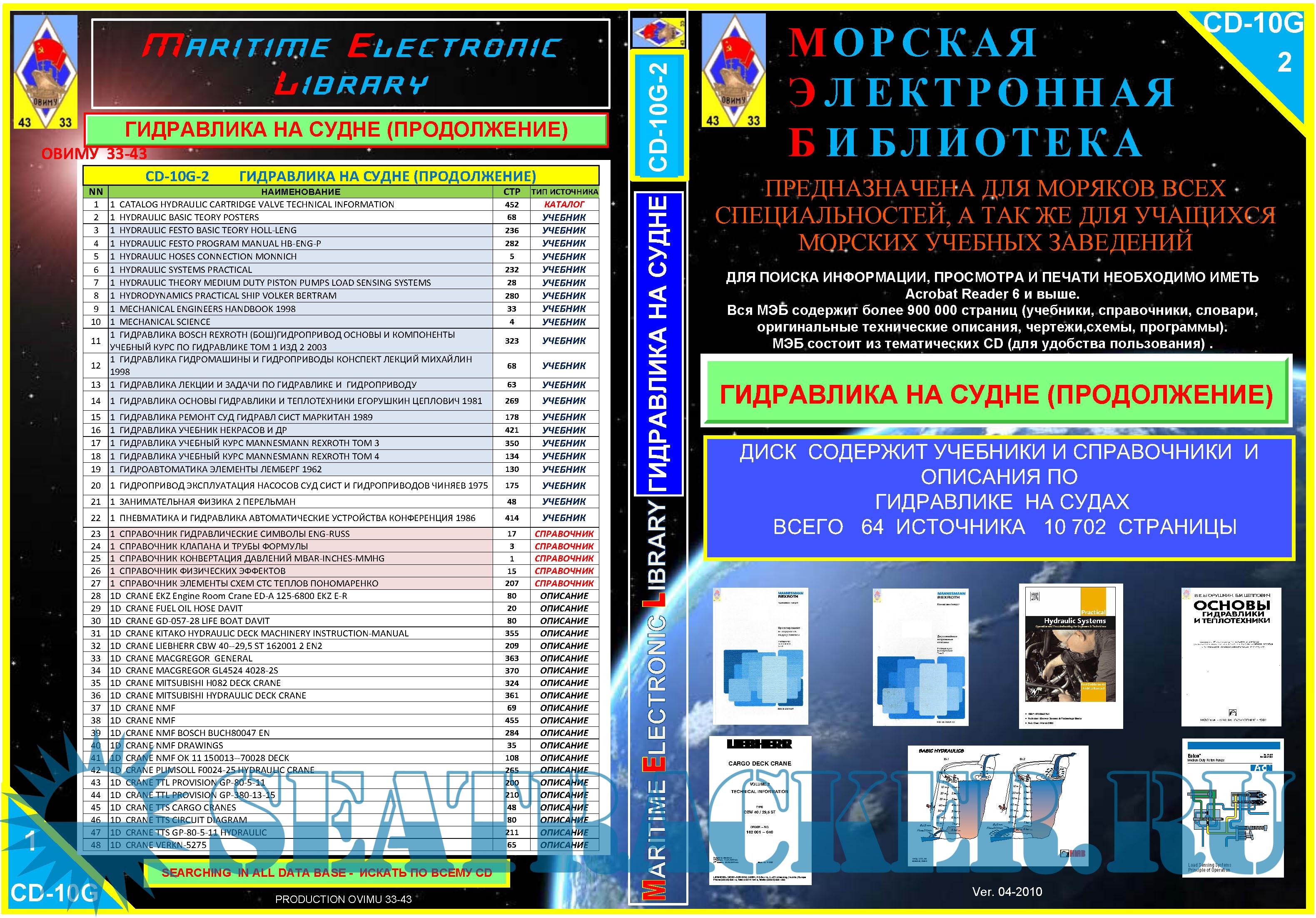 CD-10G-2 ДИСК СОДЕРЖИТ УЧЕБНИКИ И СПРАВОЧНИКИ И ОПИСАНИЯ ПО СУДОВОЙ ГИДРАВЛИКЕ