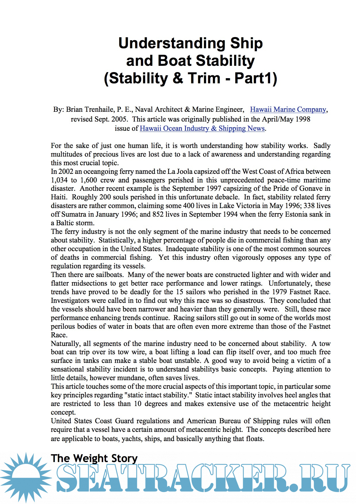 Stability, Trim and Strength for Merchant Ships and Fishing Vessels - Ian Clark [2008, PDF]