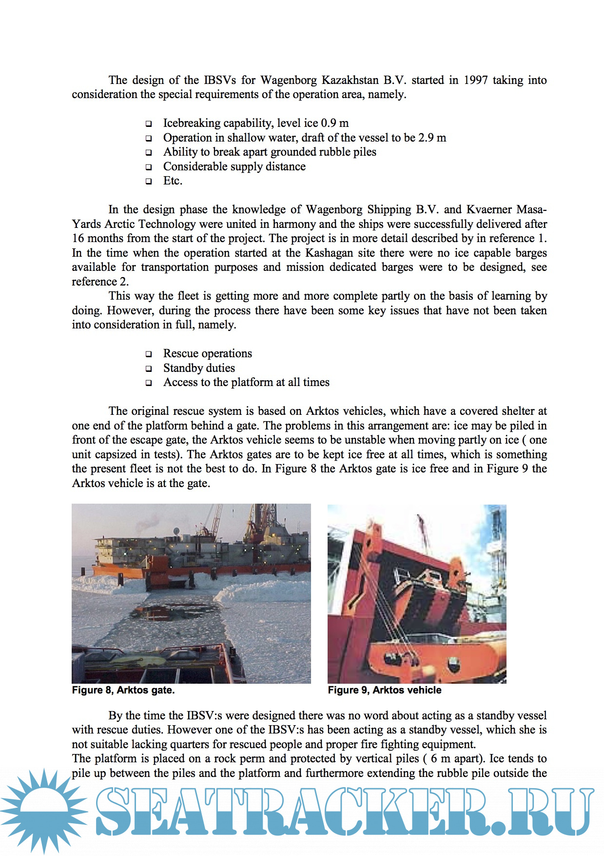 Description: This paper describes the operations in the Caspian Sea; how the fleet has been developed and what is to be expected in the near future. Also the possibilities in other areas are discussed with examples of possible vessel concepts.
