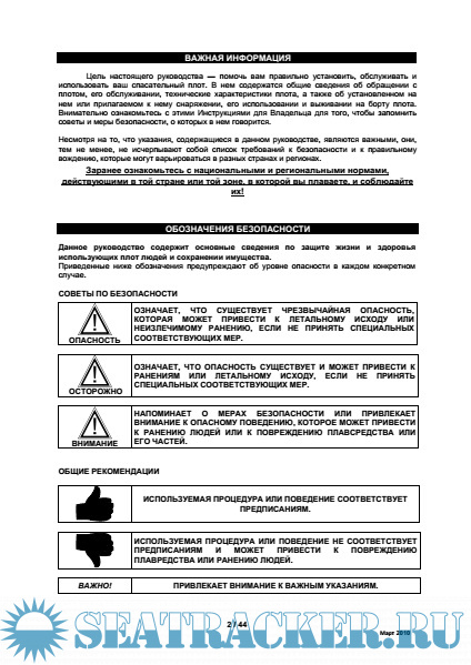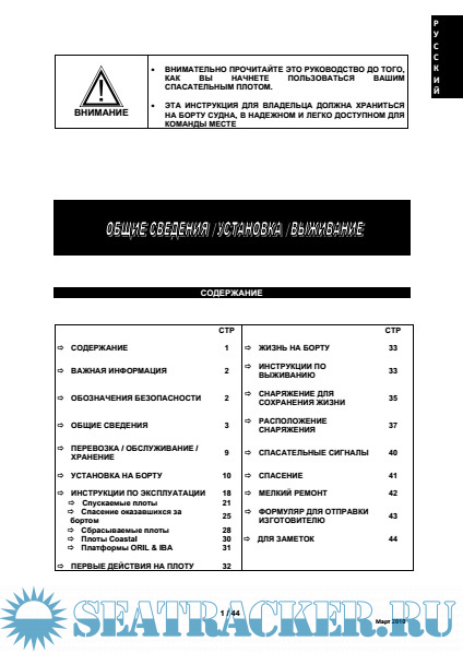 использовать ваш спасательный плот. В нем содержатся общие сведения об обращении с