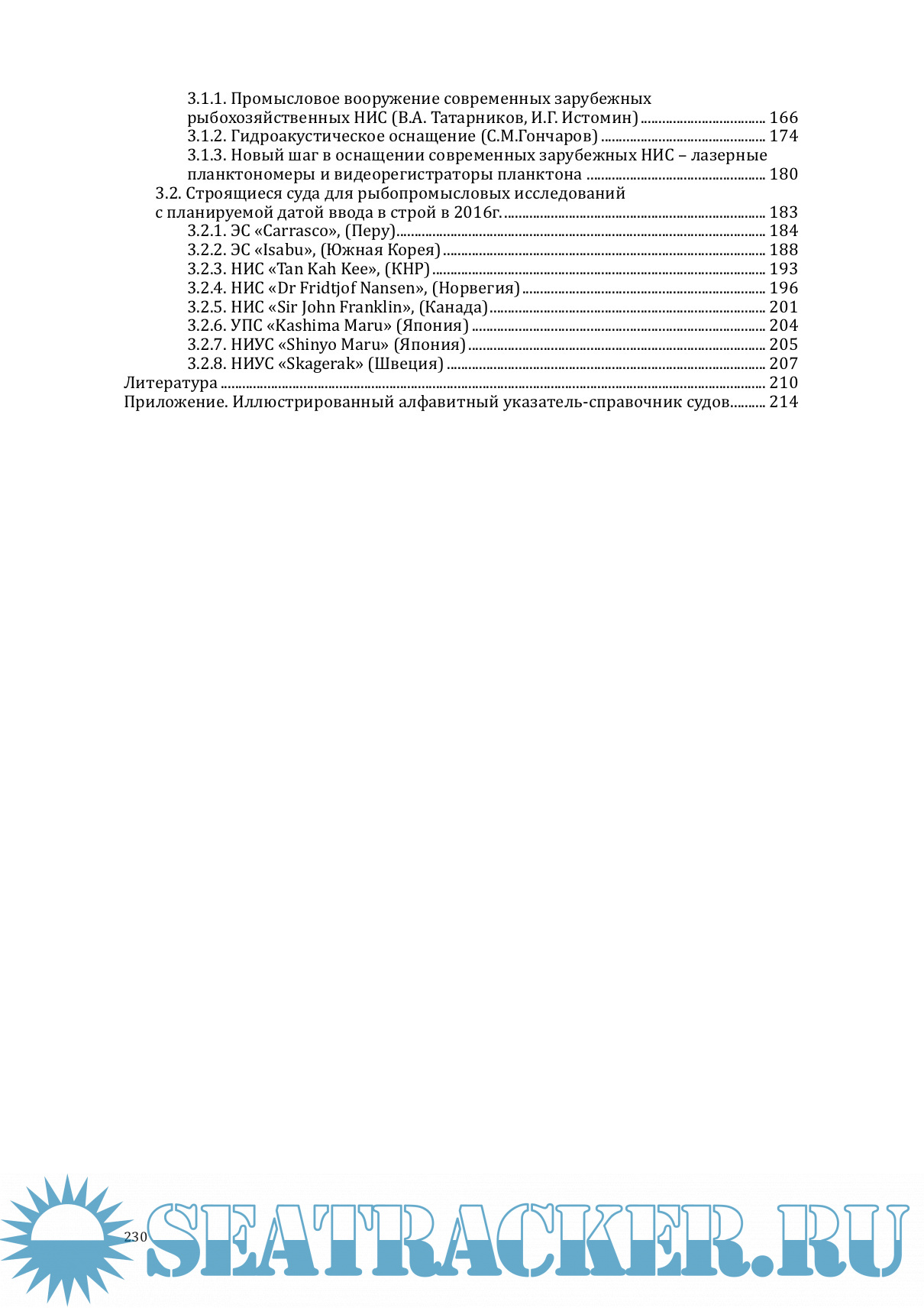 Все НИС систематизированы по функциональным группам, рассмотрены характеристики практически всех судов, построенных начиная с 2010 г. по настоящее время, что составило более полусотни единиц. На большинство из них приведены продольные разрезы и палубные планы, подробно рассмотрен состав и приведены примеры основных конфигураций научных палубно-лабораторных комплексов. Перечислен состав судового оборудования, используемого для тралово-акустических съемок и океанологического обеспечения промысла. В конце книги дается краткое описание новых моделей из перечисленного оборудования и информация о судах, планируемых к вводу в строй в 2016 г.
