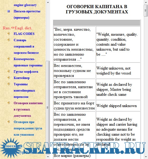 • Оговорки капитана в грузовых документах