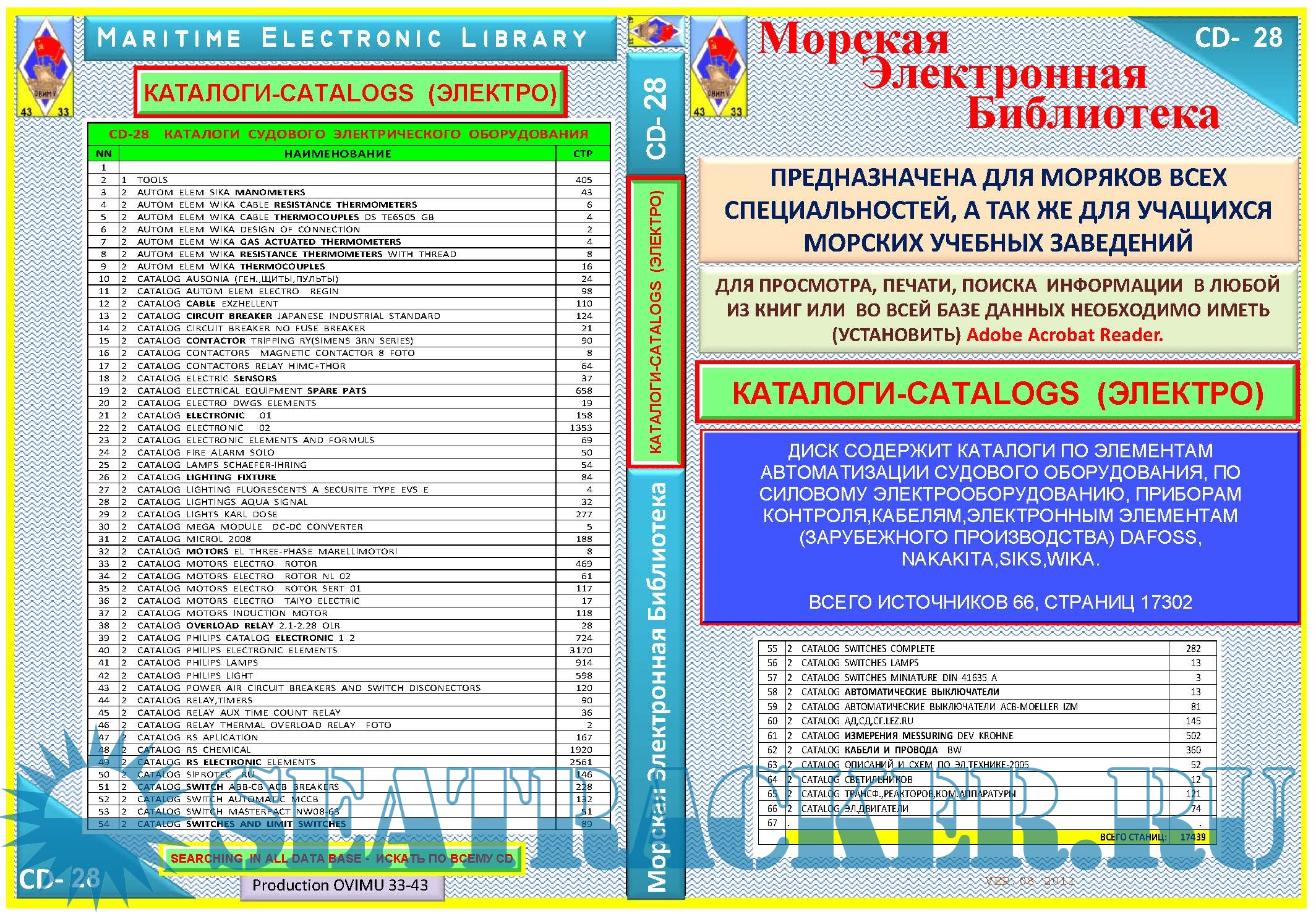 CD -28 EL.CATALOGS ( КАТАЛОГИ ПО ЭЛЕКТРООБОРУДОВАНИЮ ) Maritime Electronic Library OVIMU 33-43)