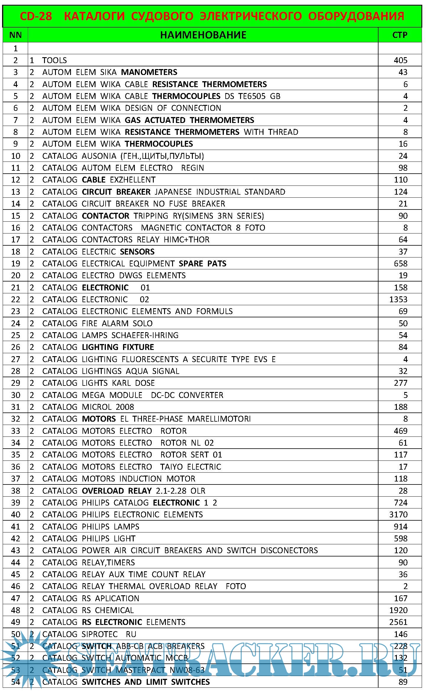 ДИСК СОДЕРЖИТ КАТАЛОГИ ПО ЭЛЕМЕНТАМ АВТОМАТИЗАЦИИ СУДОВОГО ОБОРУДОВАНИЯ, ПО СИЛОВОМУ ЭЛЕКТРООБОРУДОВАНИЮ, ПРИБОРАМ КОНТРОЛЯ,КАБЕЛЯМ,ЭЛЕКТРОННЫМ ЭЛЕМЕНТАМ (ЗАРУБЕЖНОГО ПРОИЗВОДСТВА) DAFOSS, NAKAKITA,SIKS,WIKA.