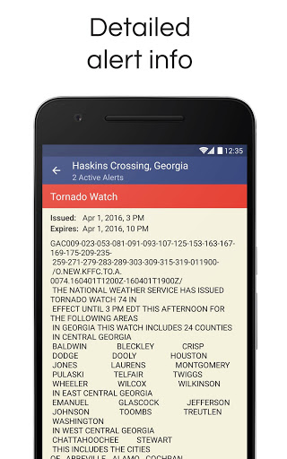 Take a look at current weather conditions or take the most of the top-notch functionality of the weather radar. Get a push notification whenever an alert is issued (tornadoes, flood warnings, snow storms, and more) without opening the app!