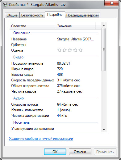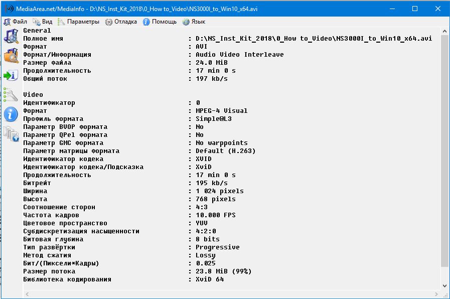 Расширенную информацию о видеофайле вы сможете получить с помощью сторонней программы MediaInfo