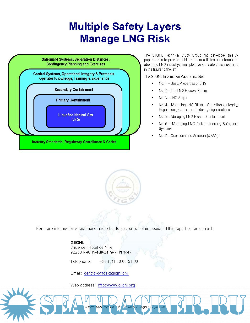 - GIIGNL Information Paper N°6 – Managing LNG Risks – Industry Safeguard Systems