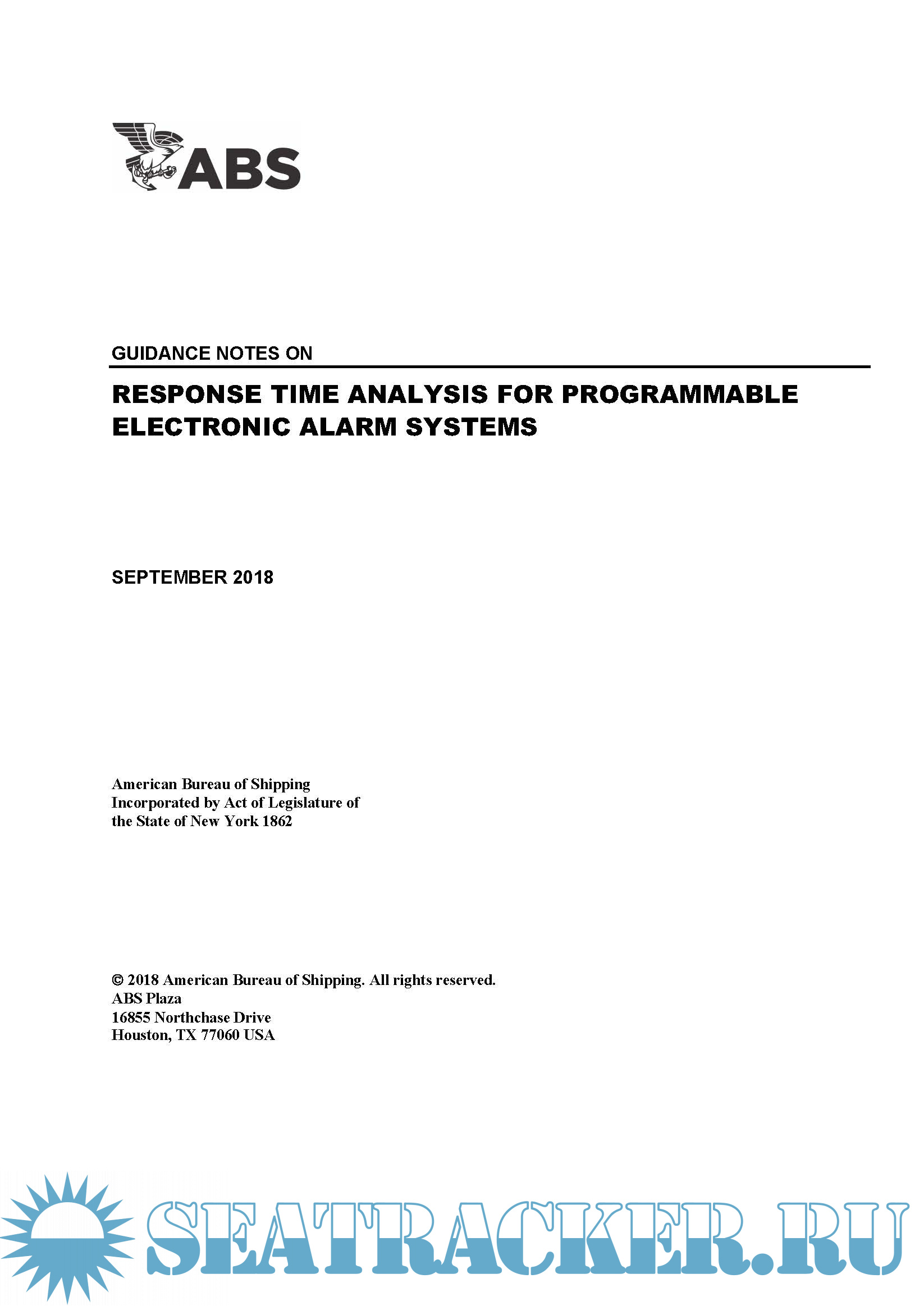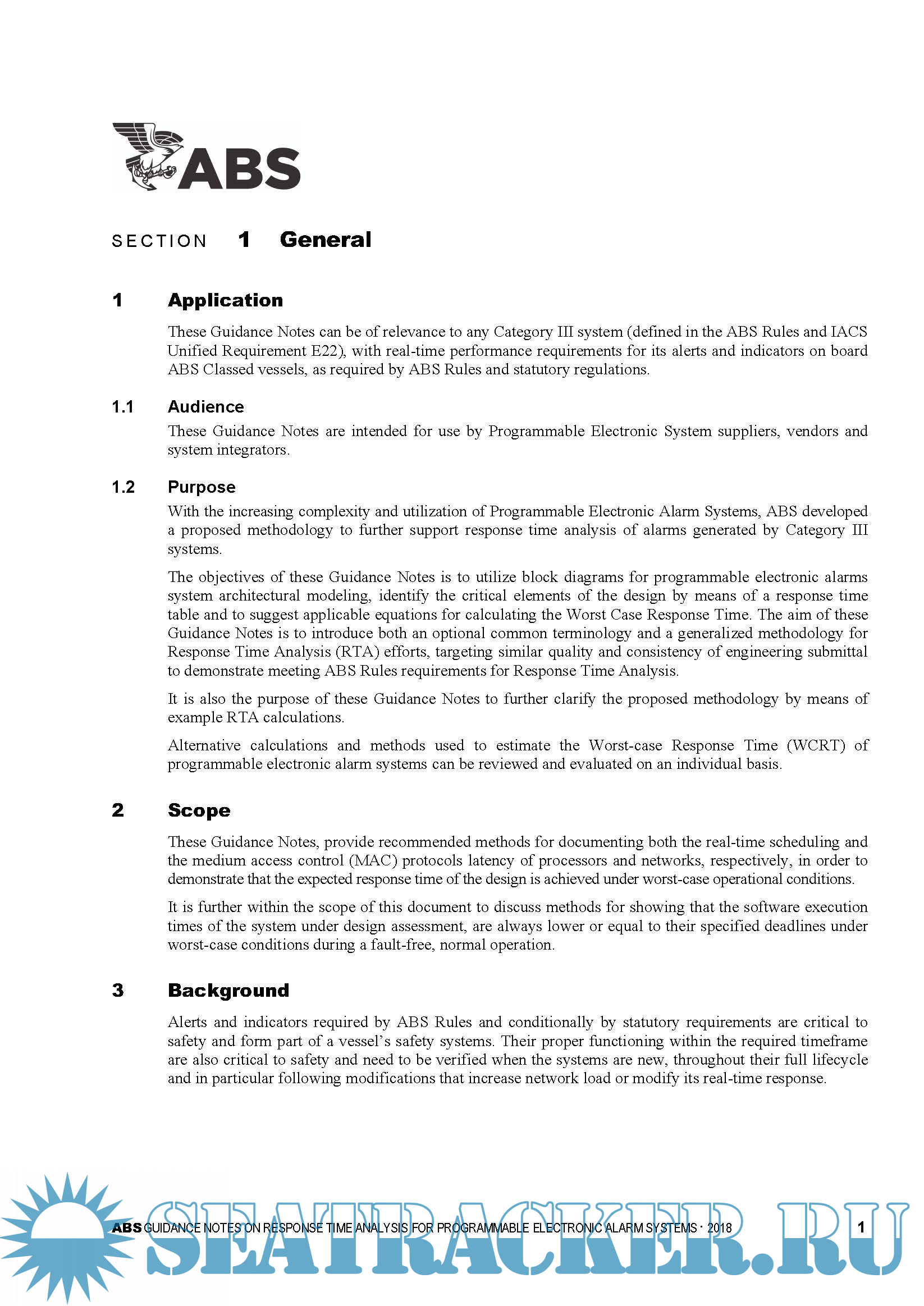 Description: The objectives of these Guidance Notes is to utilize block diagrams for programmable electronic alarms system architectural modeling, identify the critical elements of the design by means of a response time table and to suggest applicable equations for calculating the Worst Case Response Time. The aim of these Guidance Notes is to introduce both an optional common terminology and a generalized methodology for Response Time Analysis (RTA) efforts, targeting similar quality and consistency of engineering submittal to demonstrate meeting ABS Rules requirements for Response Time Analysis.