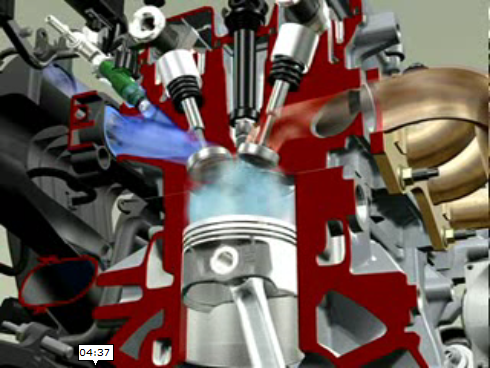 Этот ролик наглядно показывает как работает бензиновый двигатель внутреннего сгорания, начиная впуском топливовоздушной смеси и заканчивая выпуском отработавших газов.